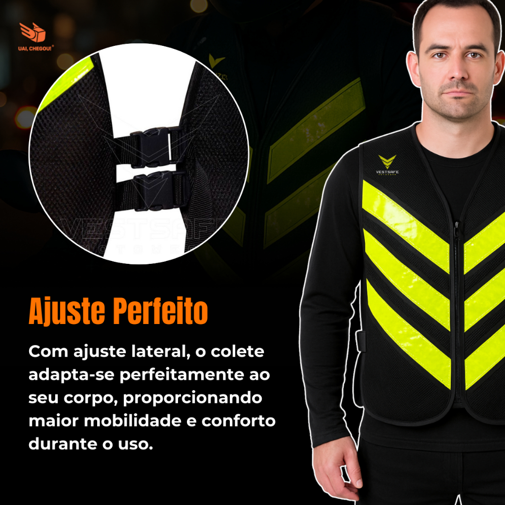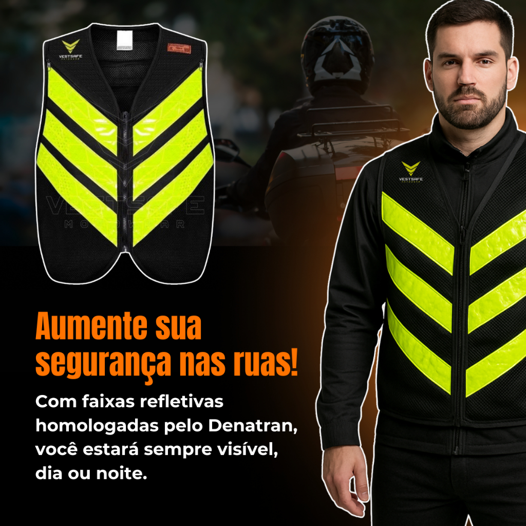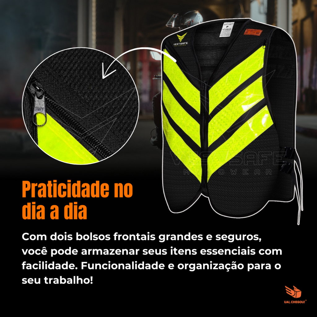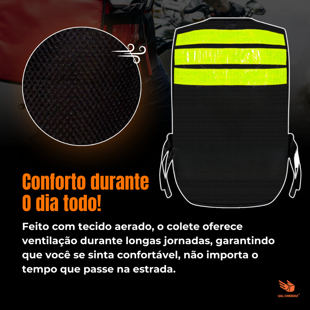 Colete Para Motoboy Mototáxi Moto Refletivo Com Bolso Alta Visibilidade Faixa Aprovado Denatran
