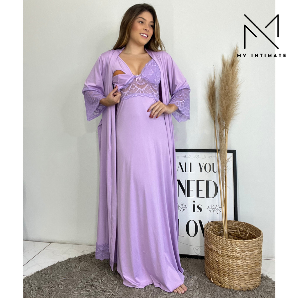 Kit de Robe e Camisola LONGOS sem Bojo de Microfibra Light de Amamentação Feminina