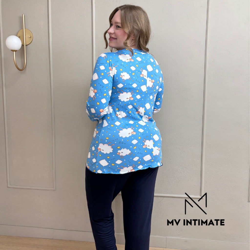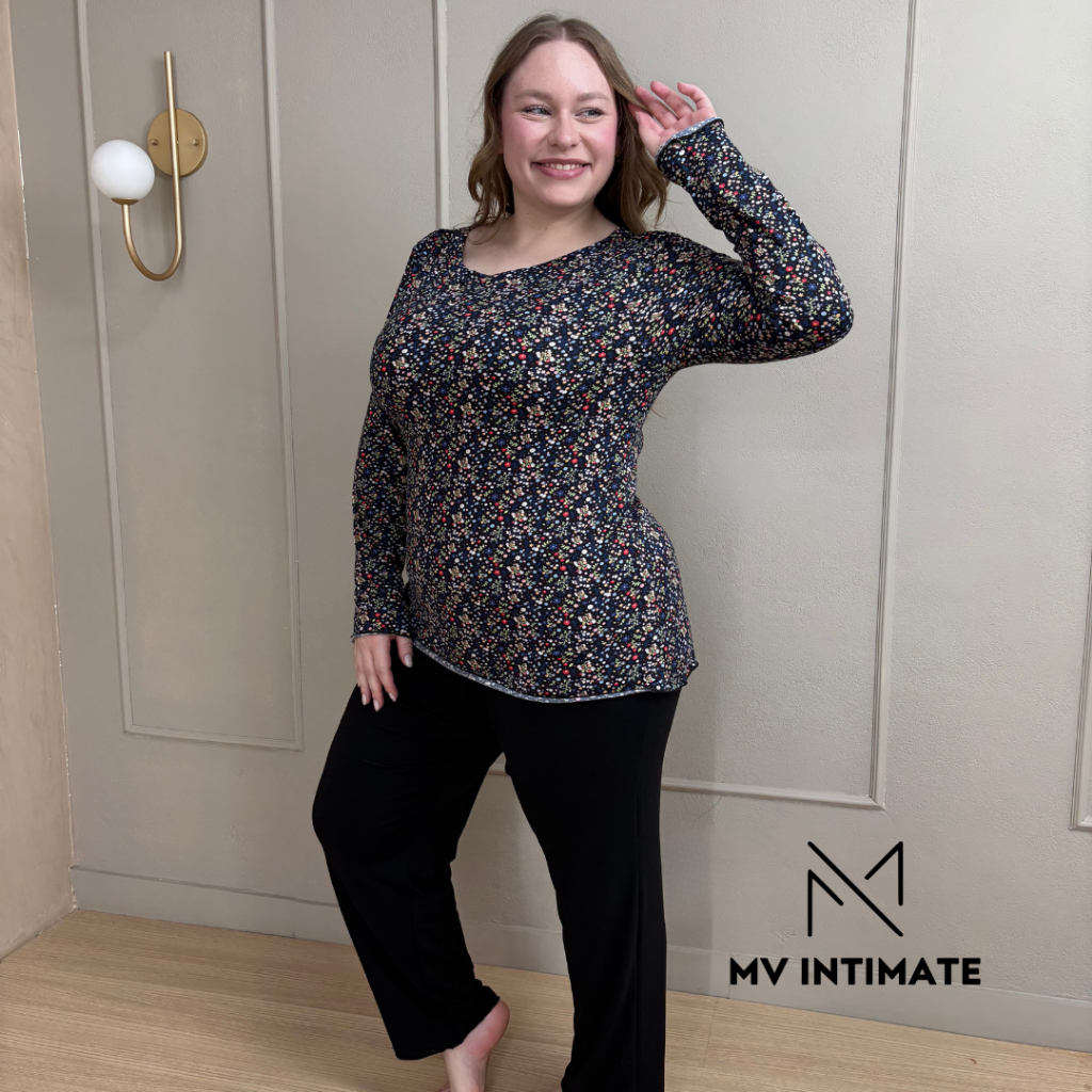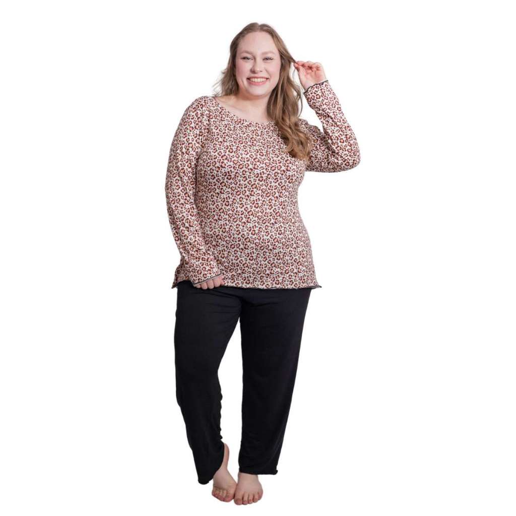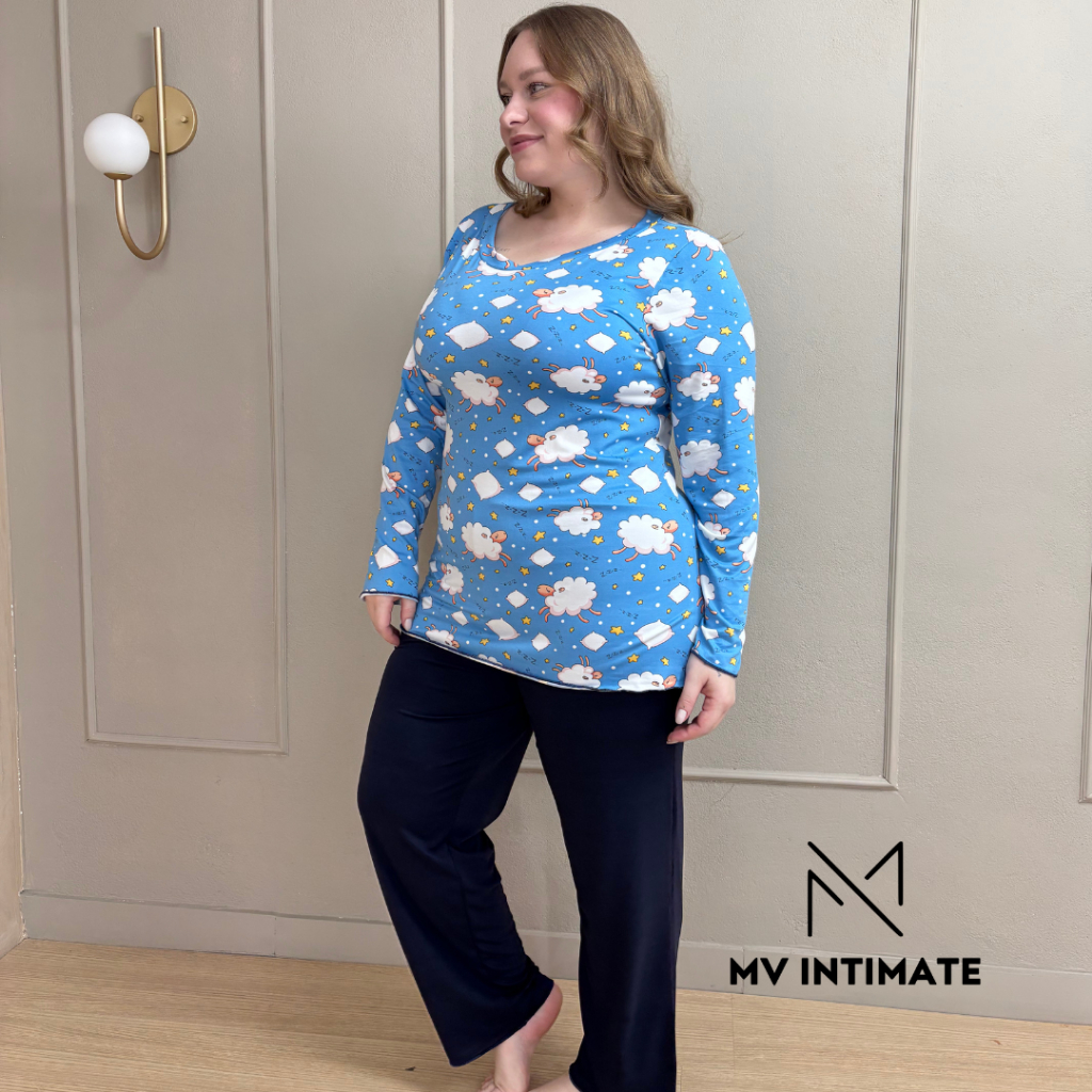 Pijama Plus Size Longo Suede Feminino Inverno Manga Longa Frio
