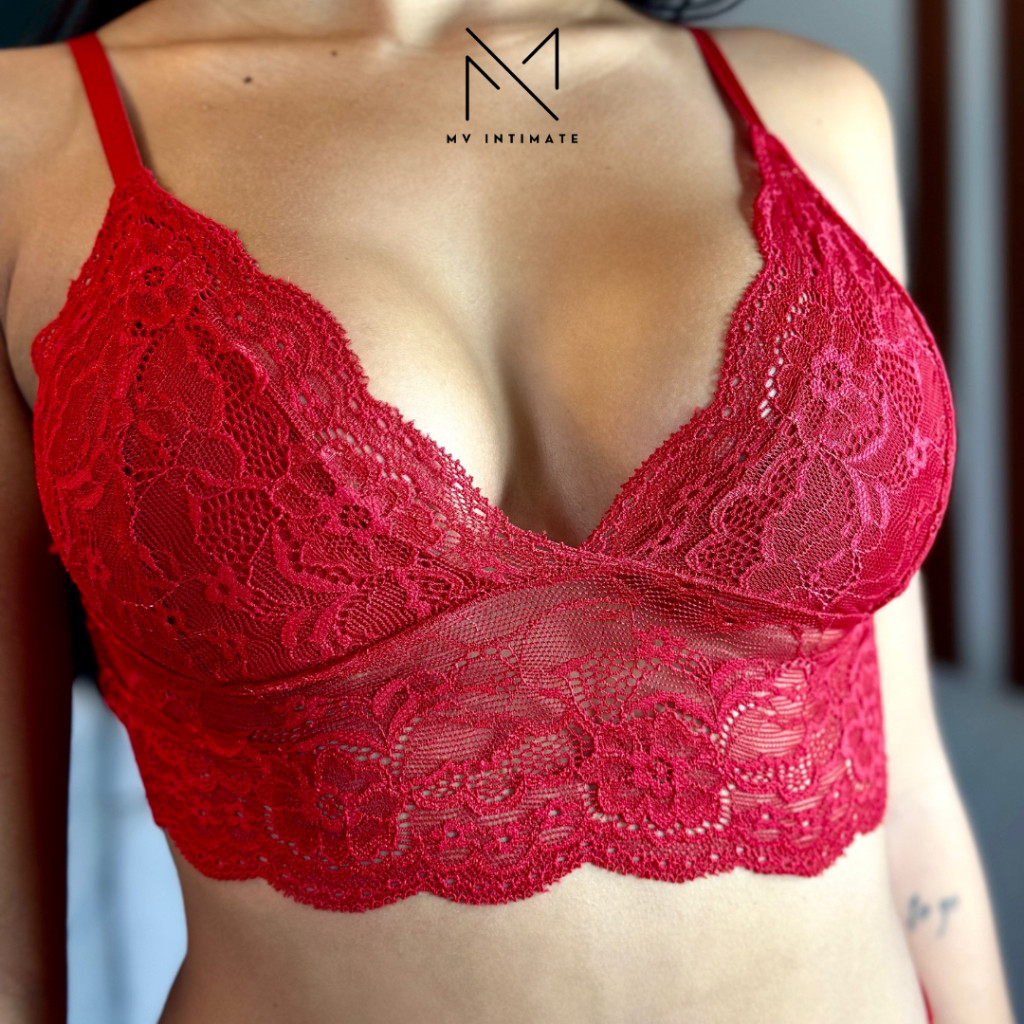Cropped Top De Renda Sem Bojo Blogueira Alça Regulável