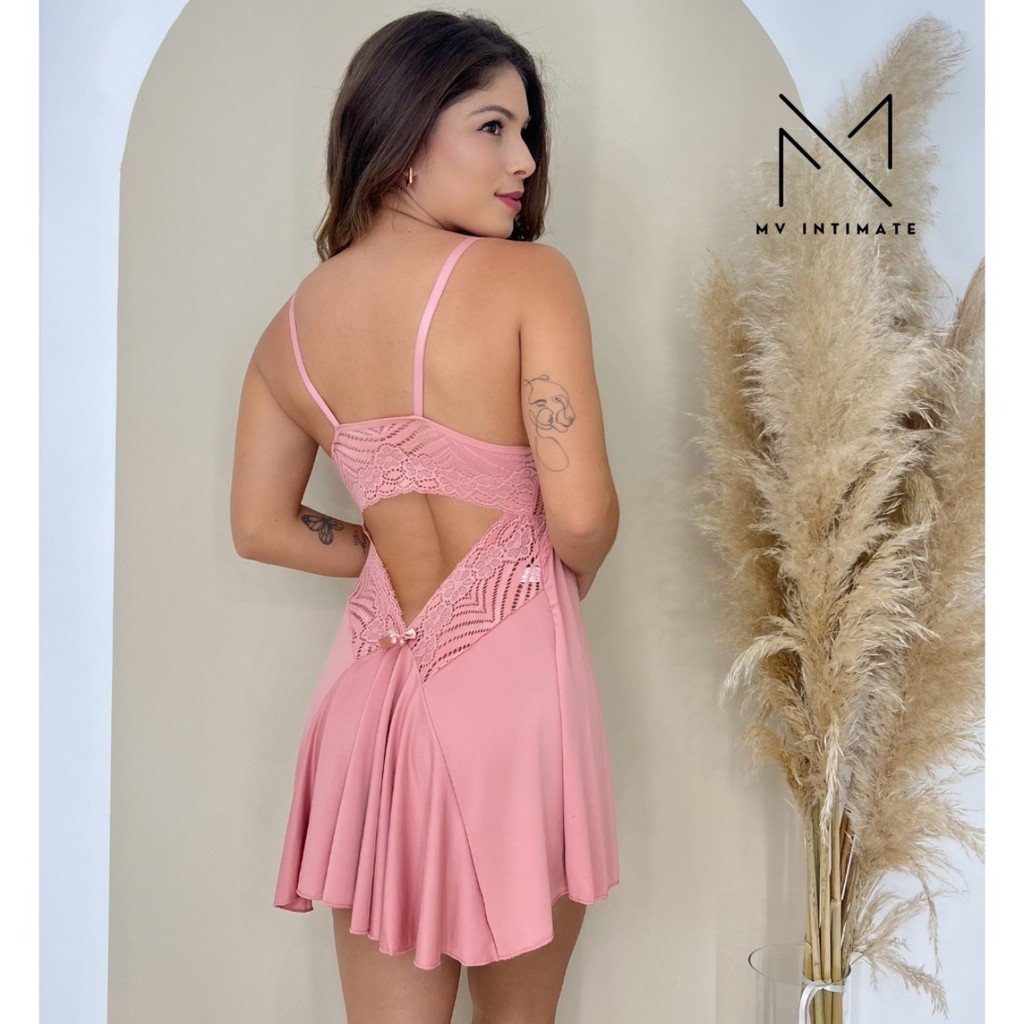 Camisola Sensual Costas Nuas Detalhada Em Renda