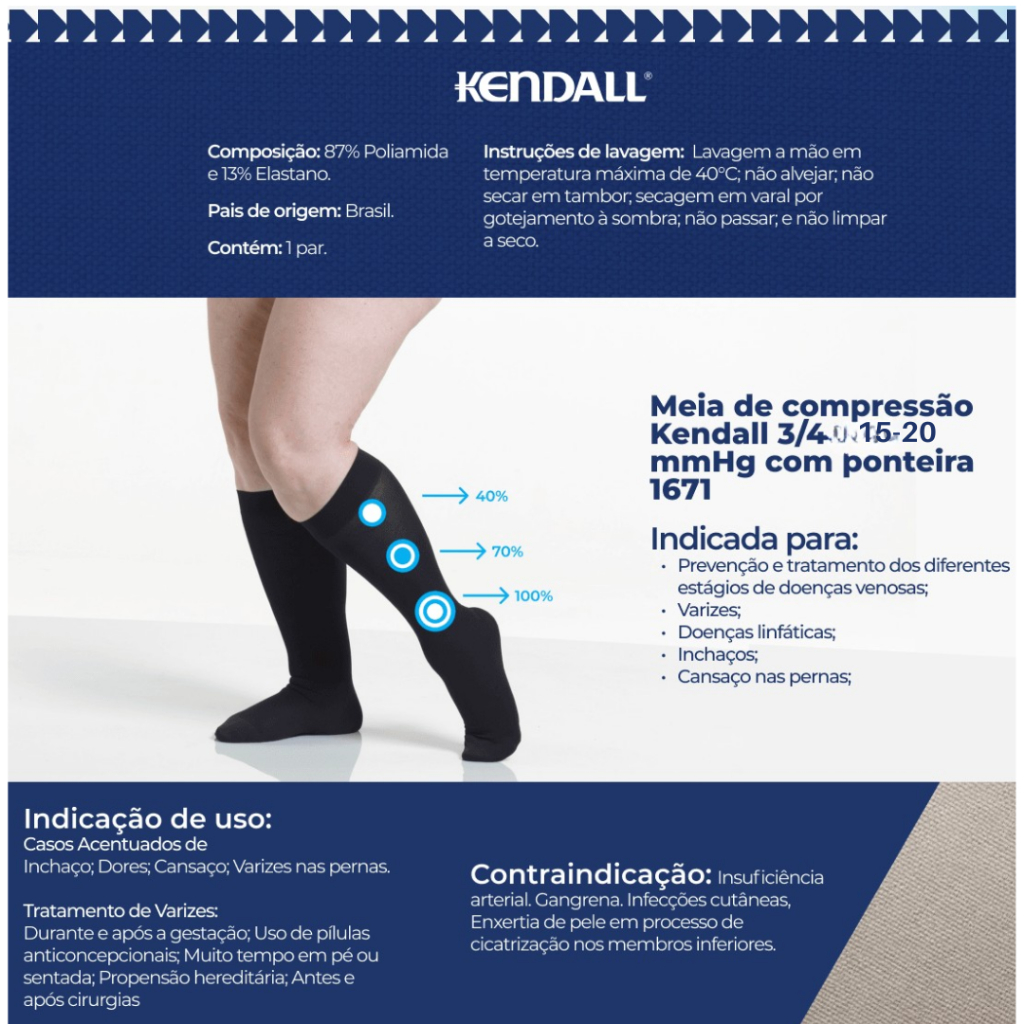 Meia Kendall 1671 Com Ponteira 3/4 Média Compressão 15-20 mmHg