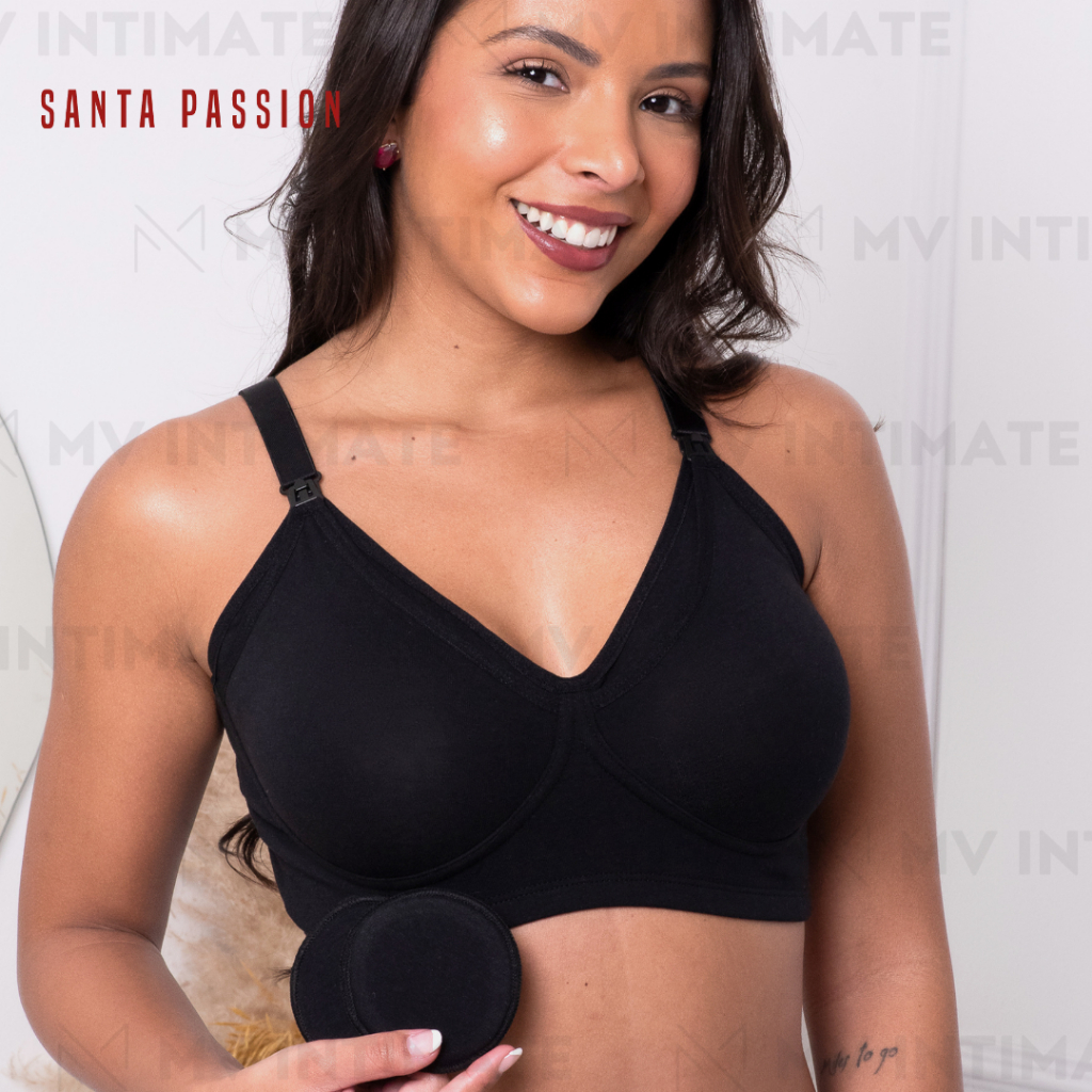 Sutiã Amamentação Moldado em Algodão Cotton Sem Aro com Abertura Frontal Santa Passion 61795