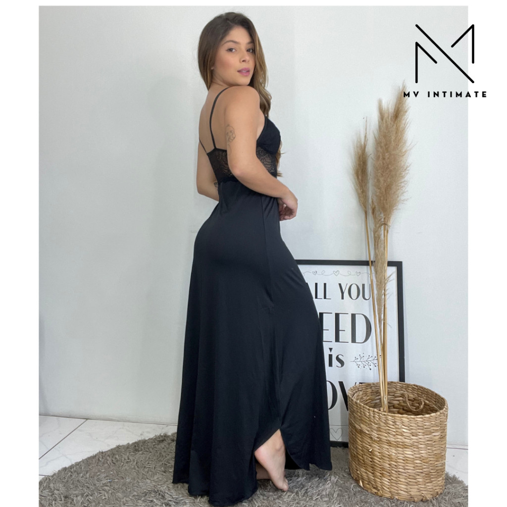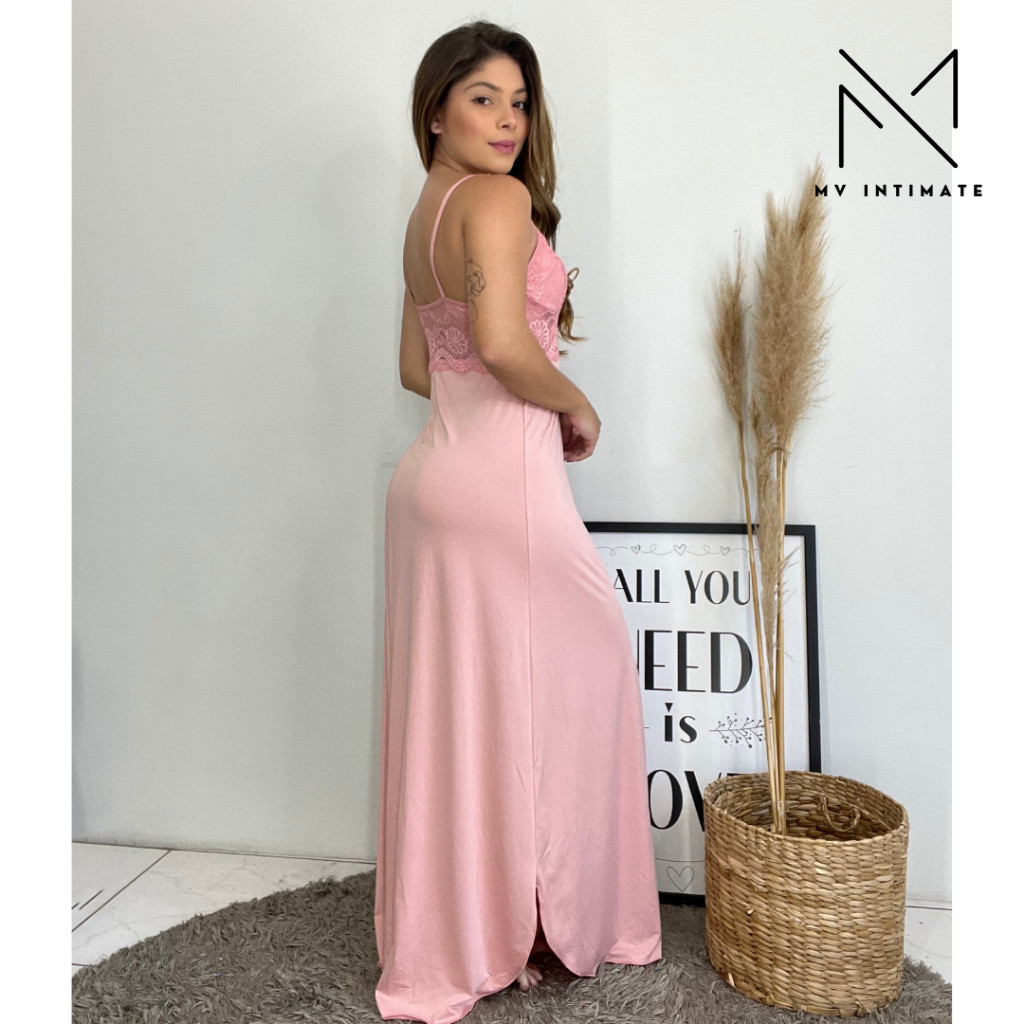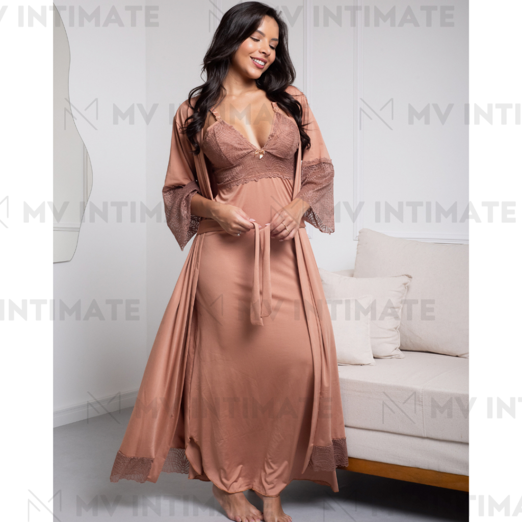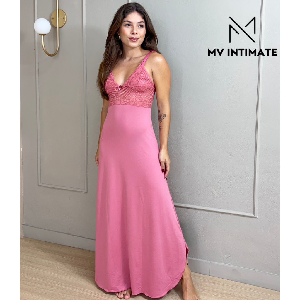 Camisola Longa AMAMENTAÇÃO Luxo com Renda em Microfibra 350