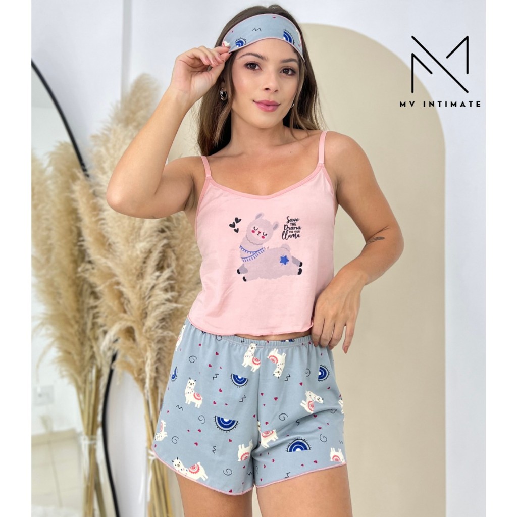 Baby Doll Estampado Curto Alça Fina e Tapa Olho