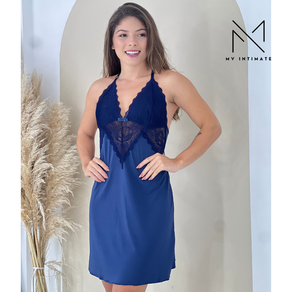 Camisola Sexy Sensual em Malha Fria com Detalhes em Renda 354