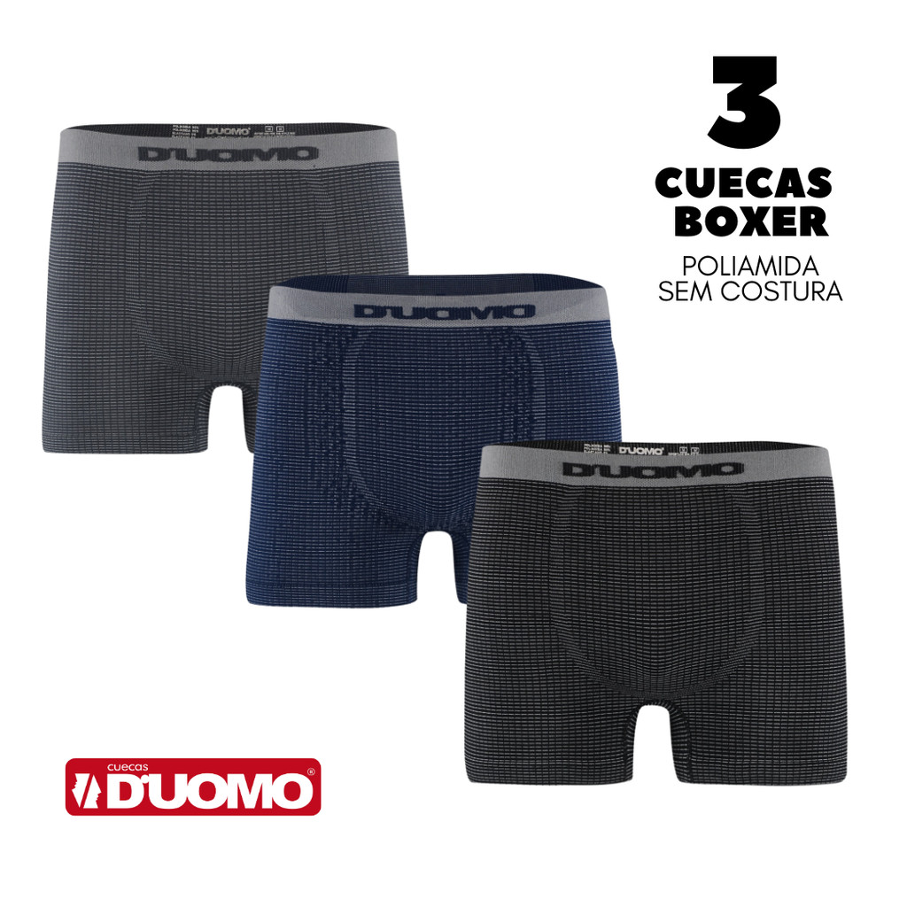 Kit 3 Cueca Boxer Duomo 295 Original Sem Costura em Microfibra/Poliamida