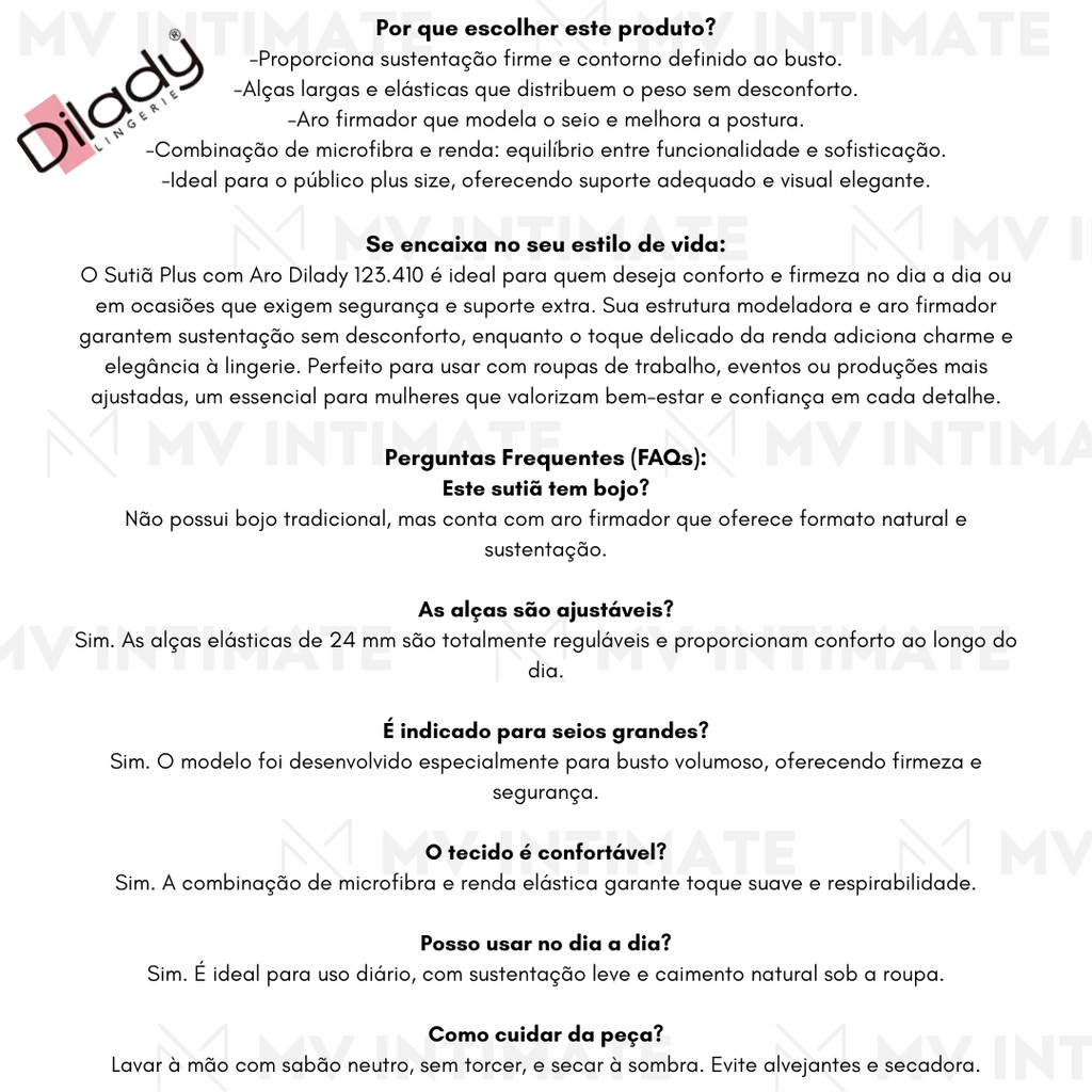 Sutiã Plus Size Com Aro Sem Bojo Dilady 123410 - Alta Sustentação