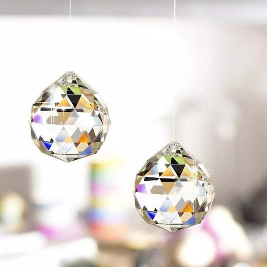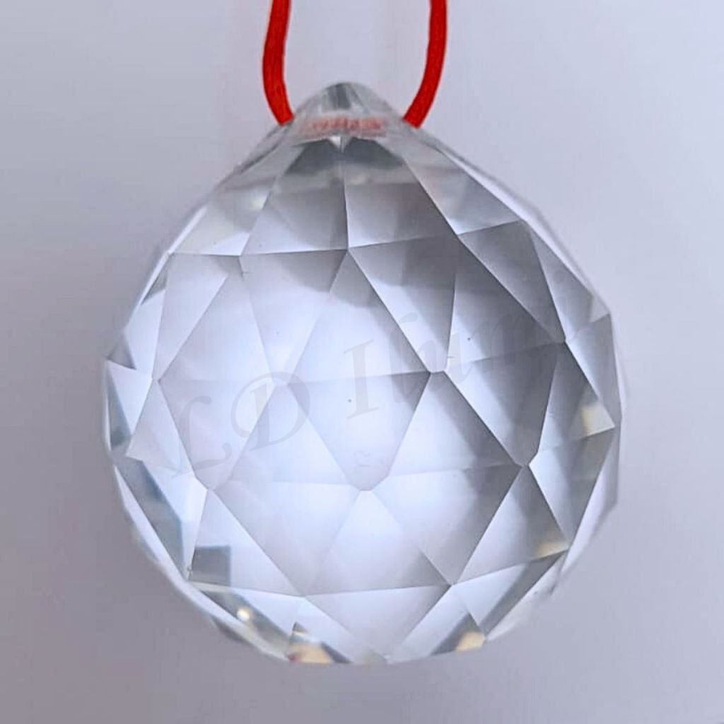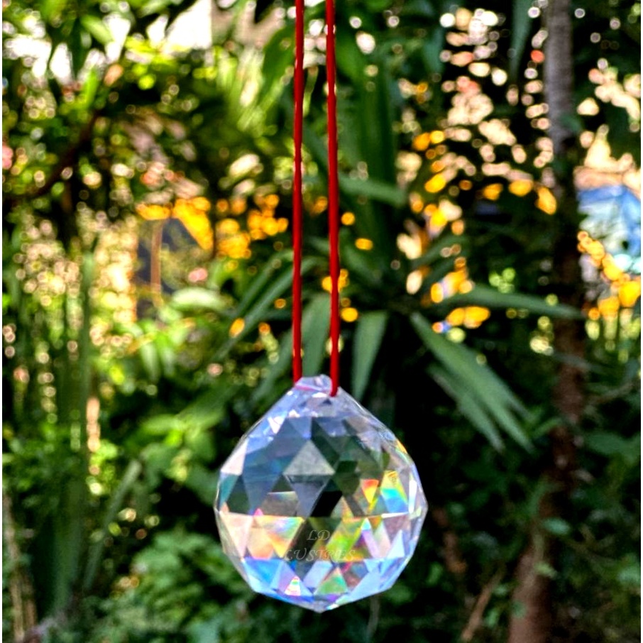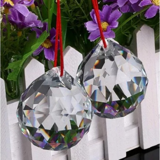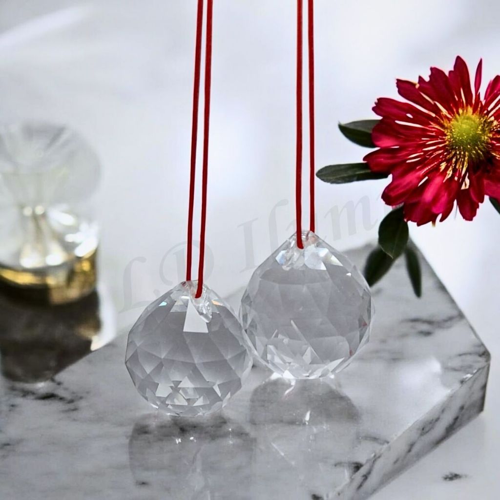 Kit Feng Shui Com Duas Esferas Multifacetada Cristal K9 40mm Com Fio Poliéster Vermelho