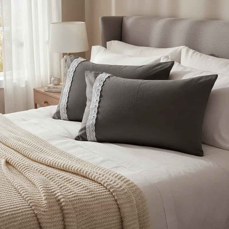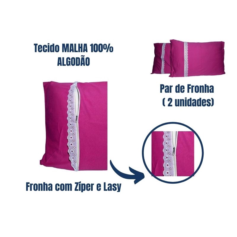 Par de Fronhas Capas Malha Lisa 100% Algodão com Zíper para Travesseiro Casa