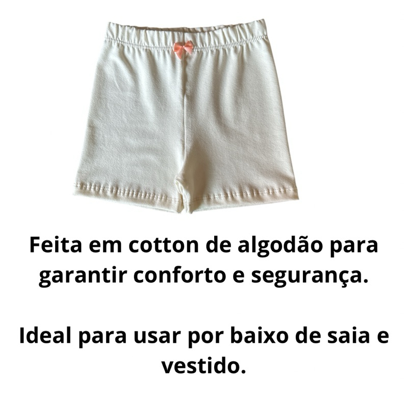 Kit 3 Calcinha Segurança Infantil Branco Menina 2 a 12 Anos Cotton Algodão (0046)