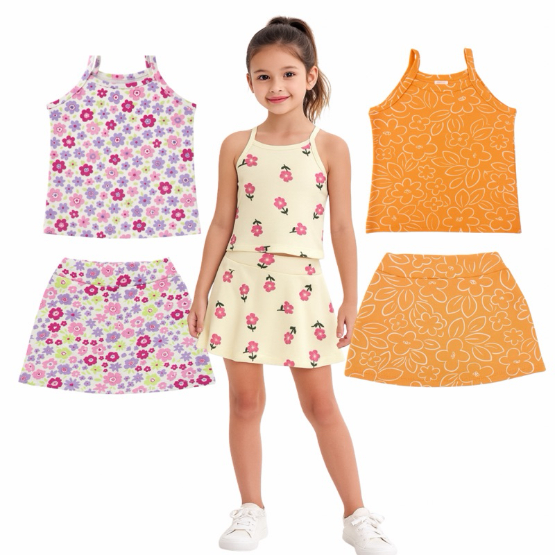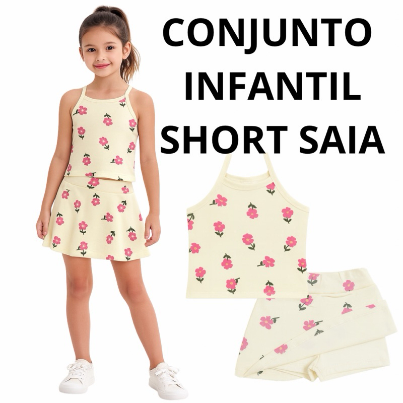 Conjunto Short Saia e Regata de Alça Cotton Algodão Infantil Menina 2 a 12 Anos