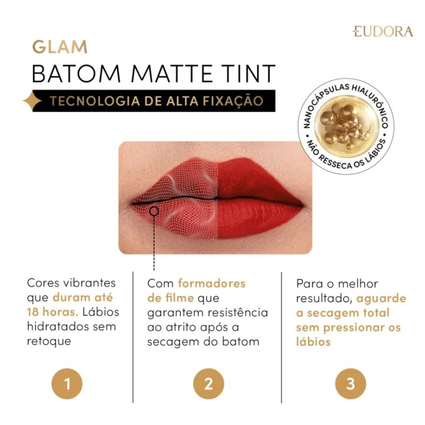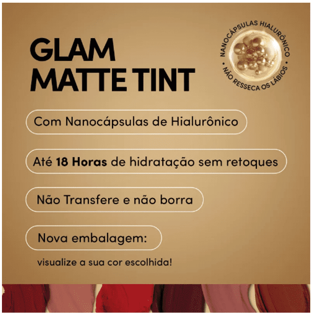 Batom Líquido Matte Tint Glam 18hs SEM RETOQUE / NÃO TRANSFERE- 4g