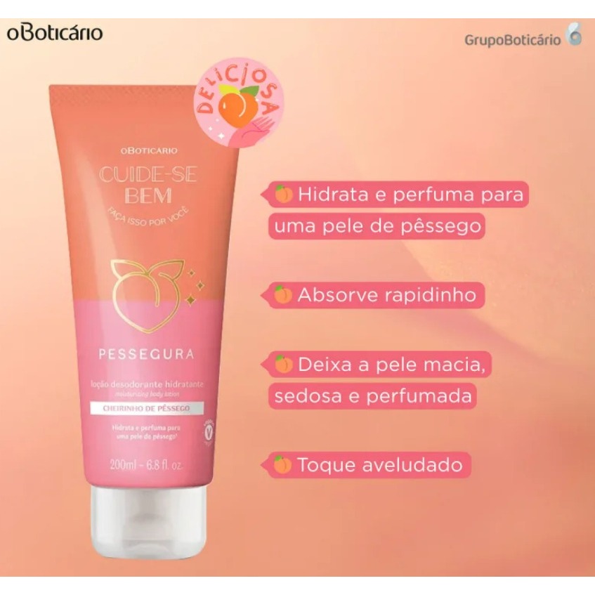 Loção Hidratante Desodorante Corporal 200 ml Cuide-se Bem Pessegura - O Boticário