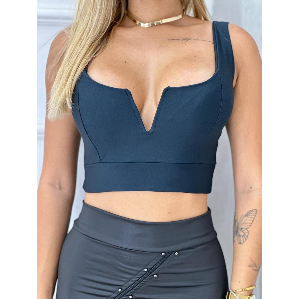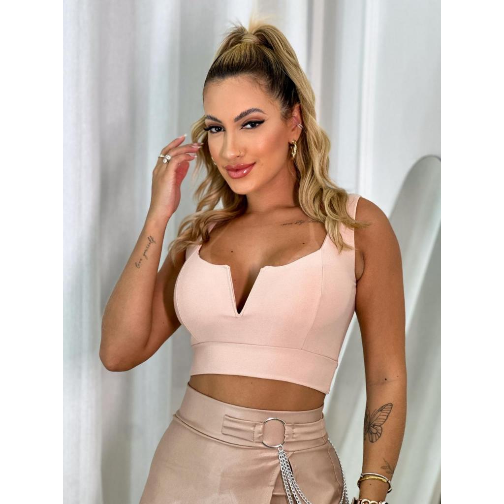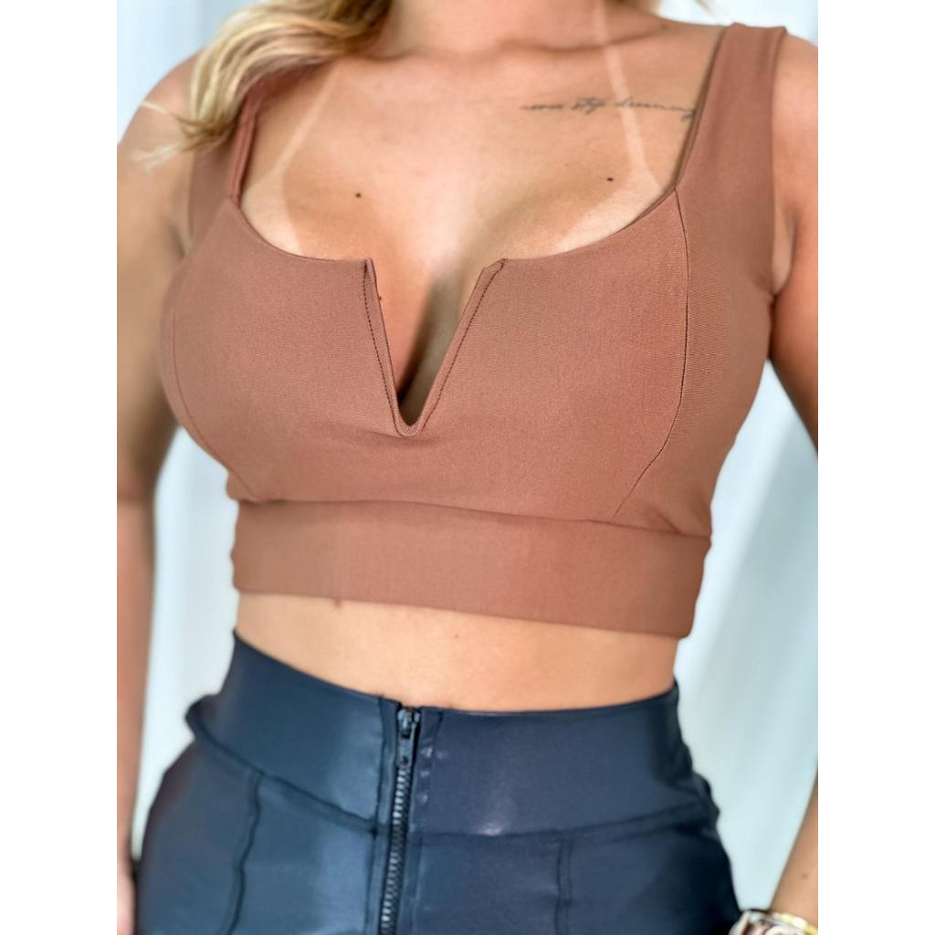 Cropped Aro Decote em V Com Bojo da Sustenta nos seios Blusinha de alcinha Feminina Regatinha Roupas Femininas