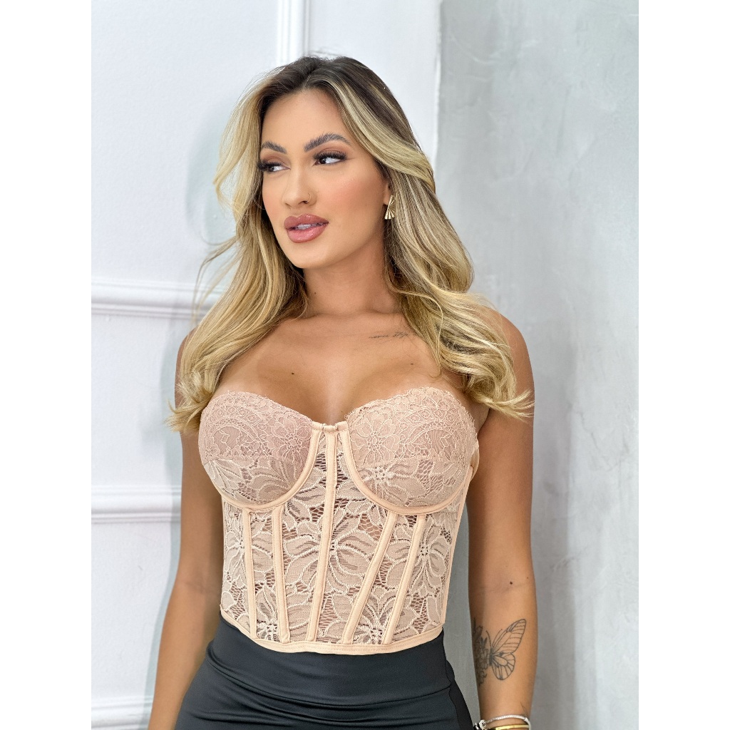 Cropped Top Renda Feminino Corselet Tule Tomara que Caia Amarração nas Costas Sustentavel Verão Moda Feminina Elegante