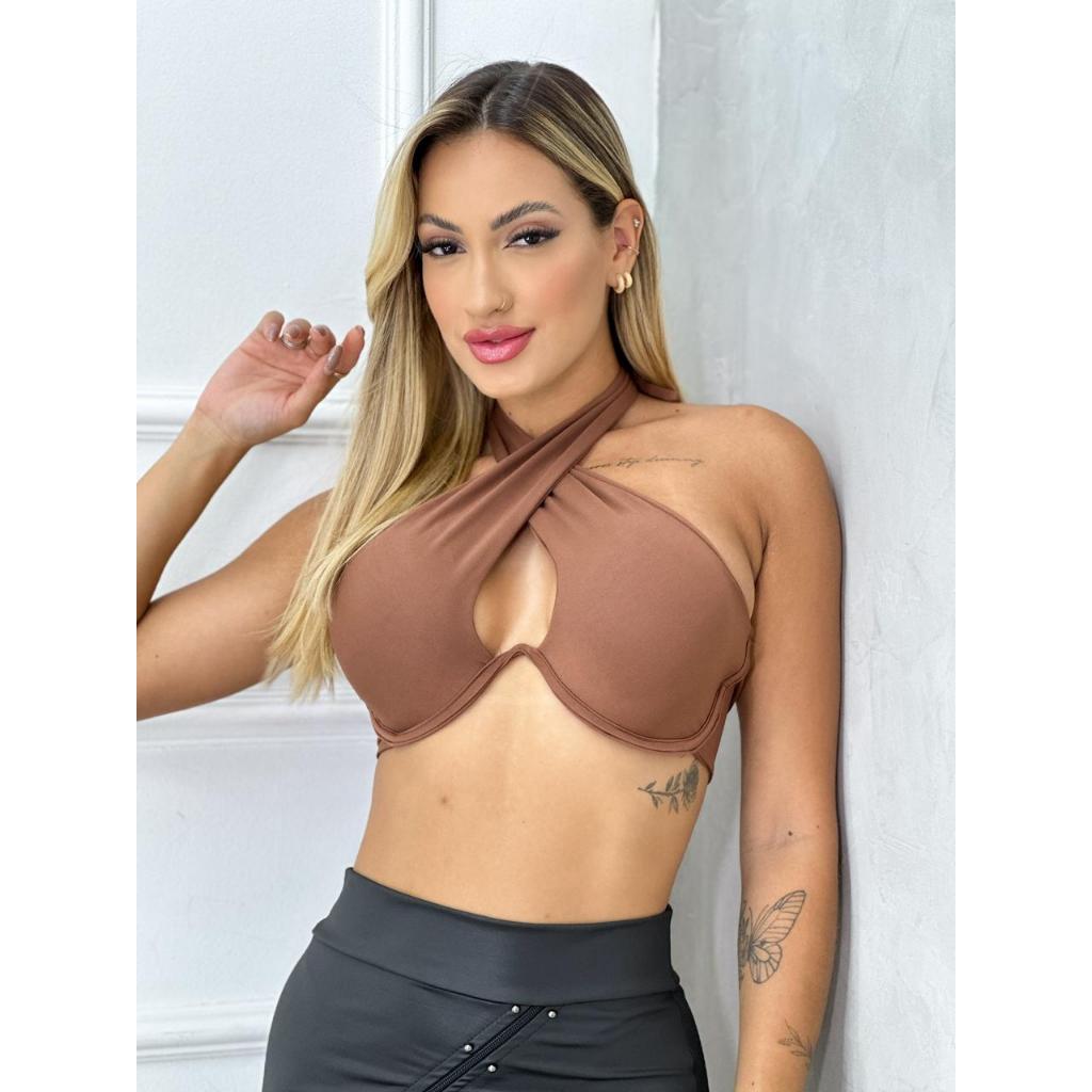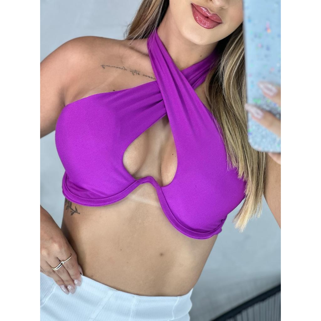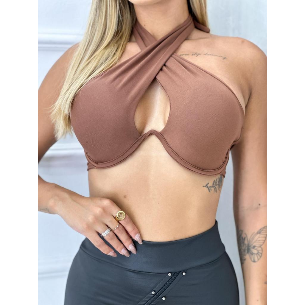 Top Cropped Transpassado Aro Efeito Silicone Moda Verão 2026