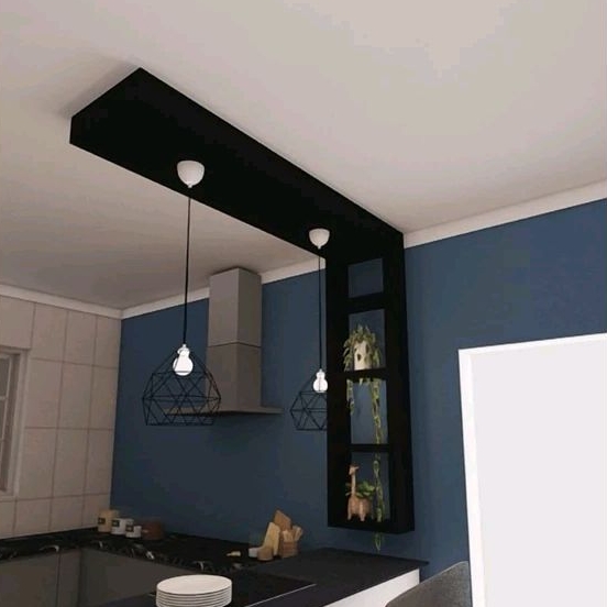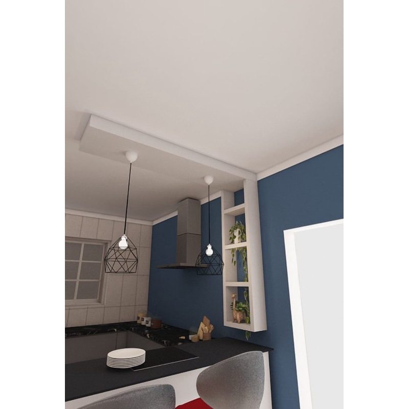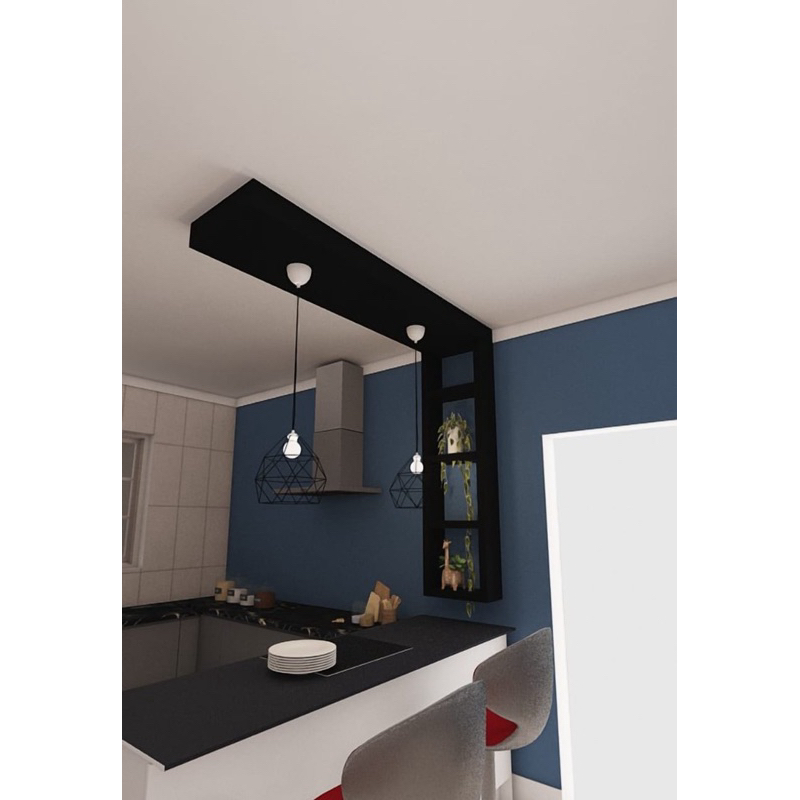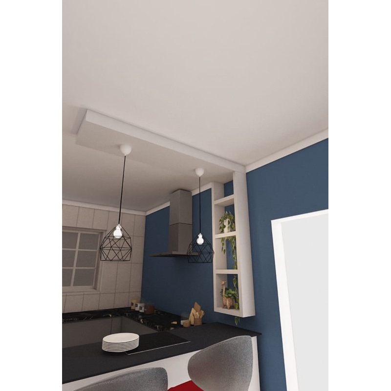 Nicho para cozinha com Sanca no teto balcão passa prato em MDF.