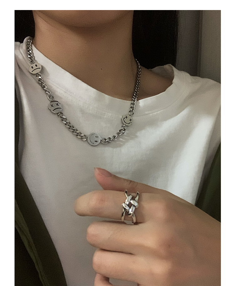 Colar Facial Sorridente Em Aço Titânio , Moda hip hop De Rua , Não Desbota