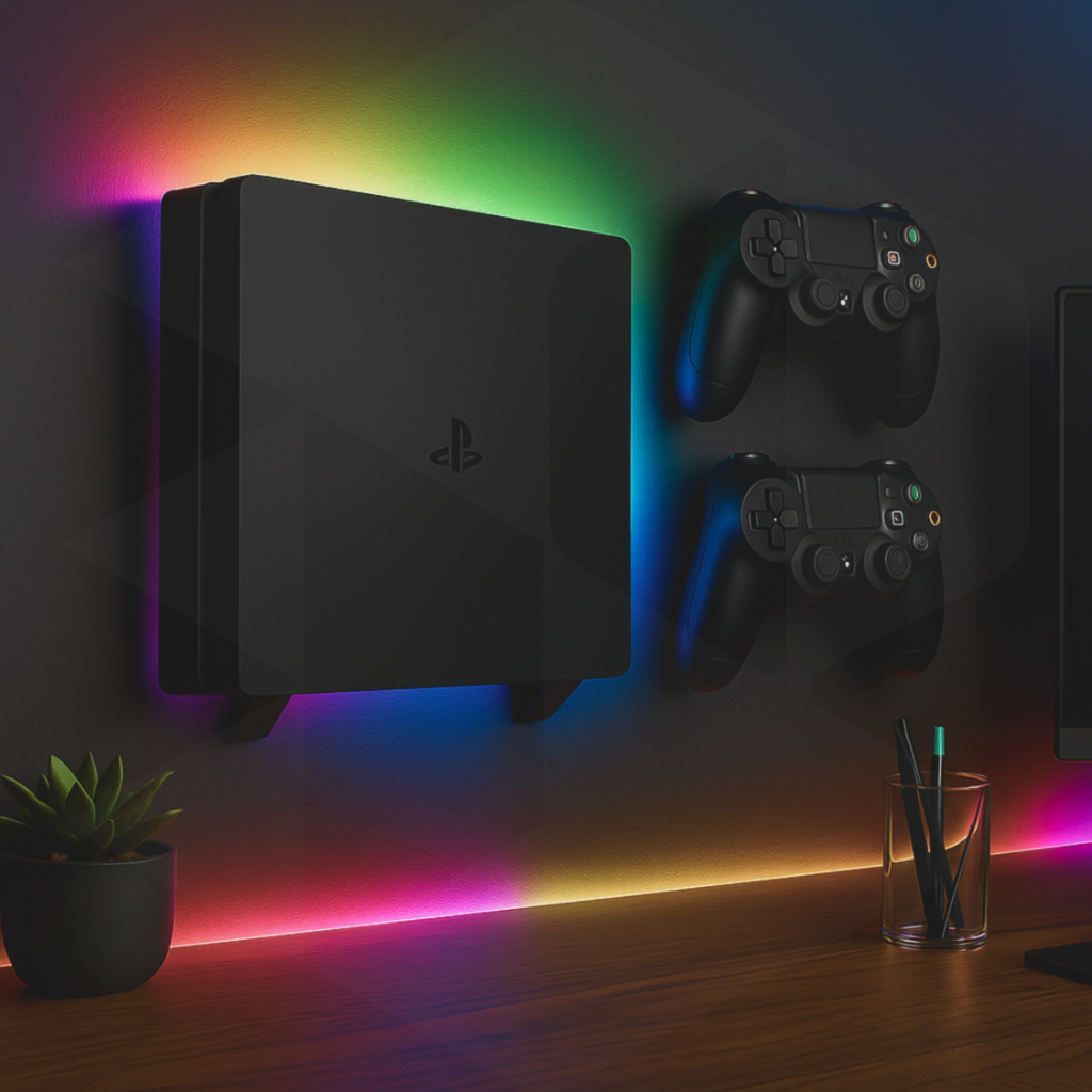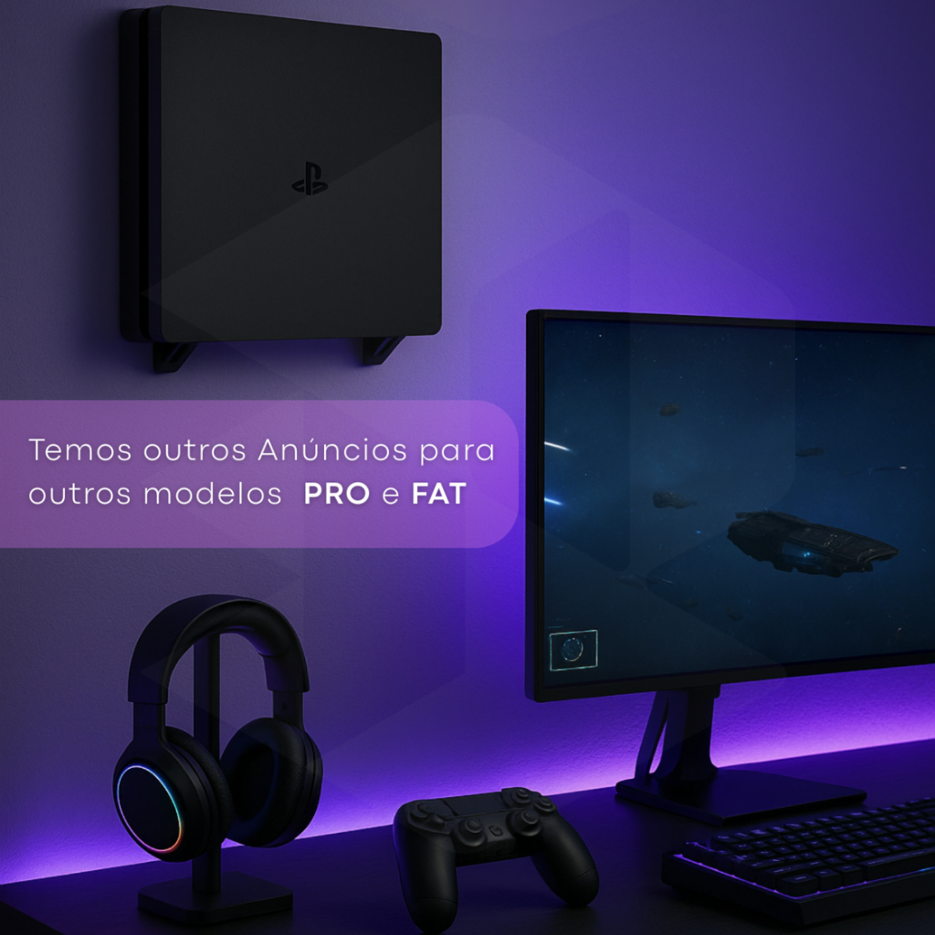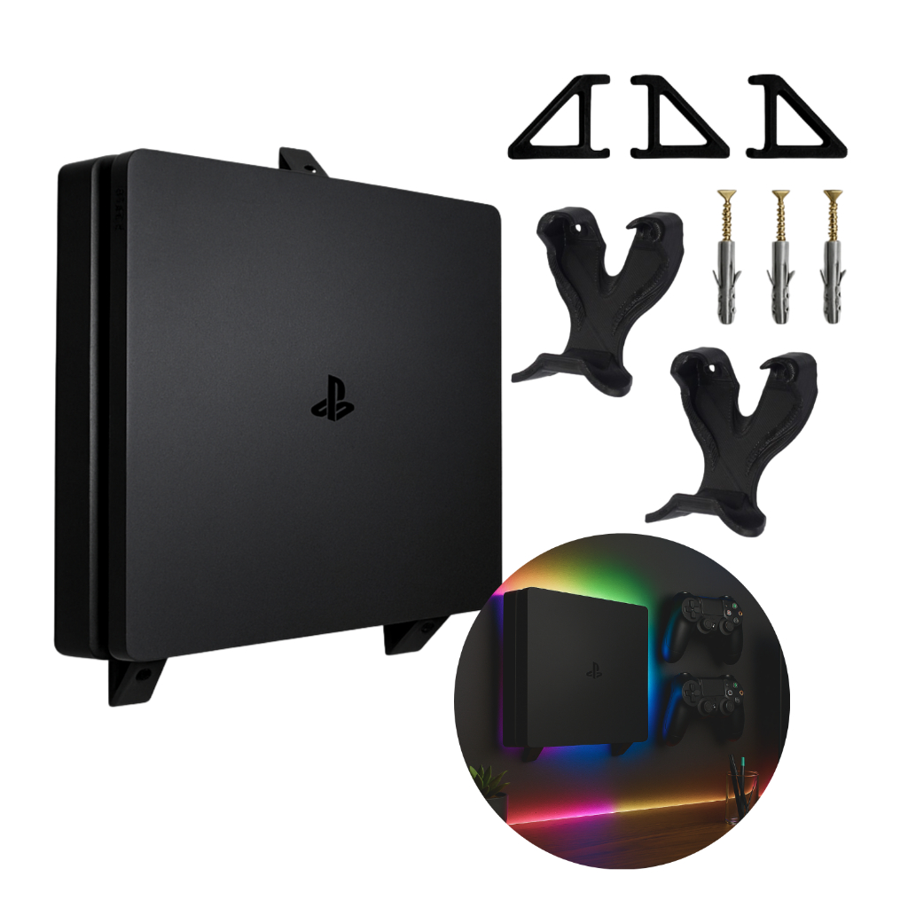 Kit Suportes De Parede Para Playstation 4 Slim + 2 Controles /Fácil Instalação/ Organize Setup Gamer