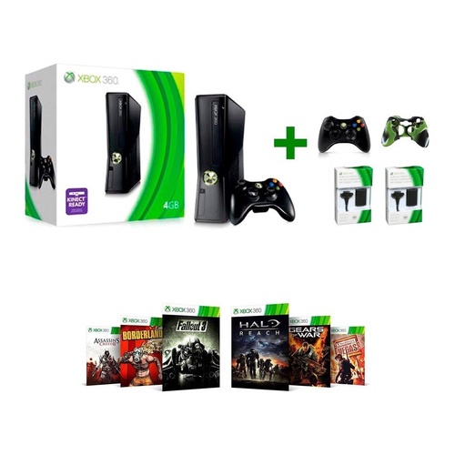 Xbox 360 Slim 4gb +10 Jogos+2 Controles