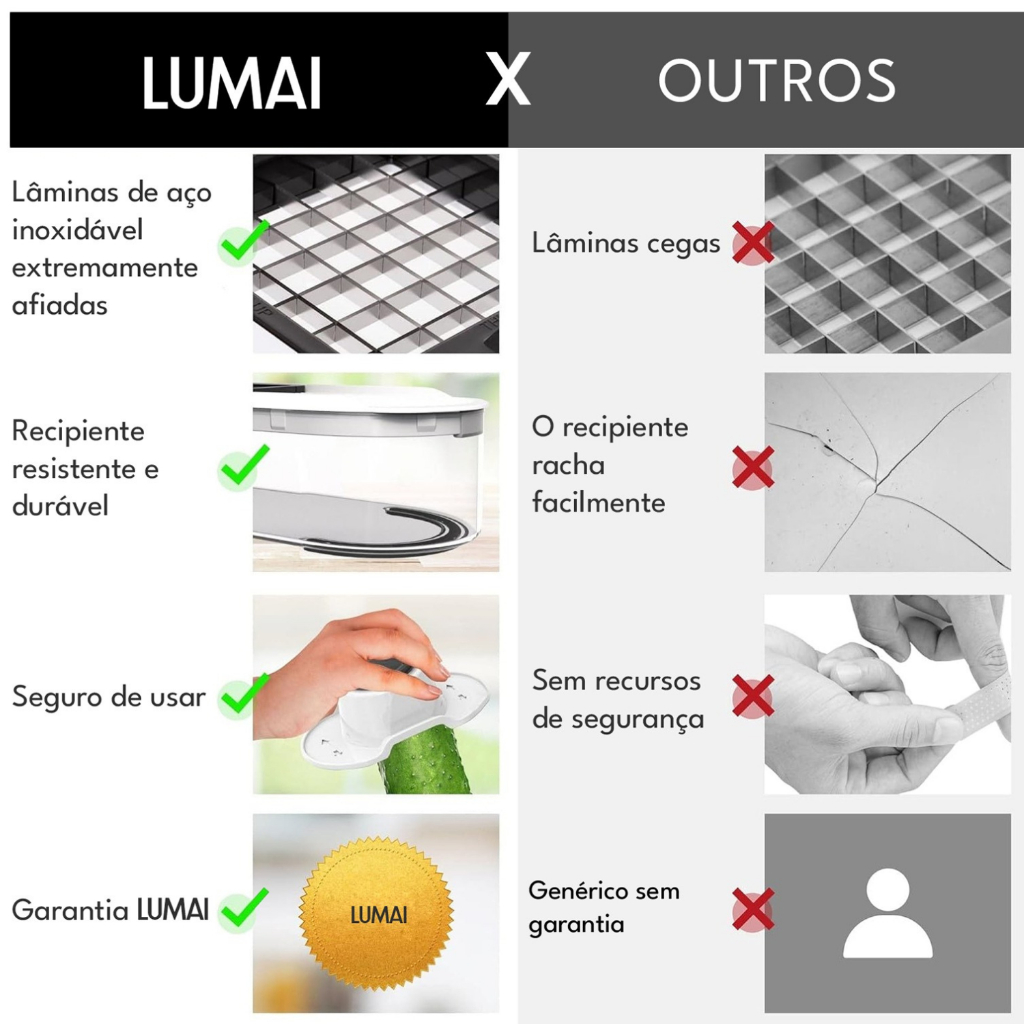 LUMAI Cortador Processador Picador Mandoline Premium para Batata Queijos Legumes Verduras e Frutas