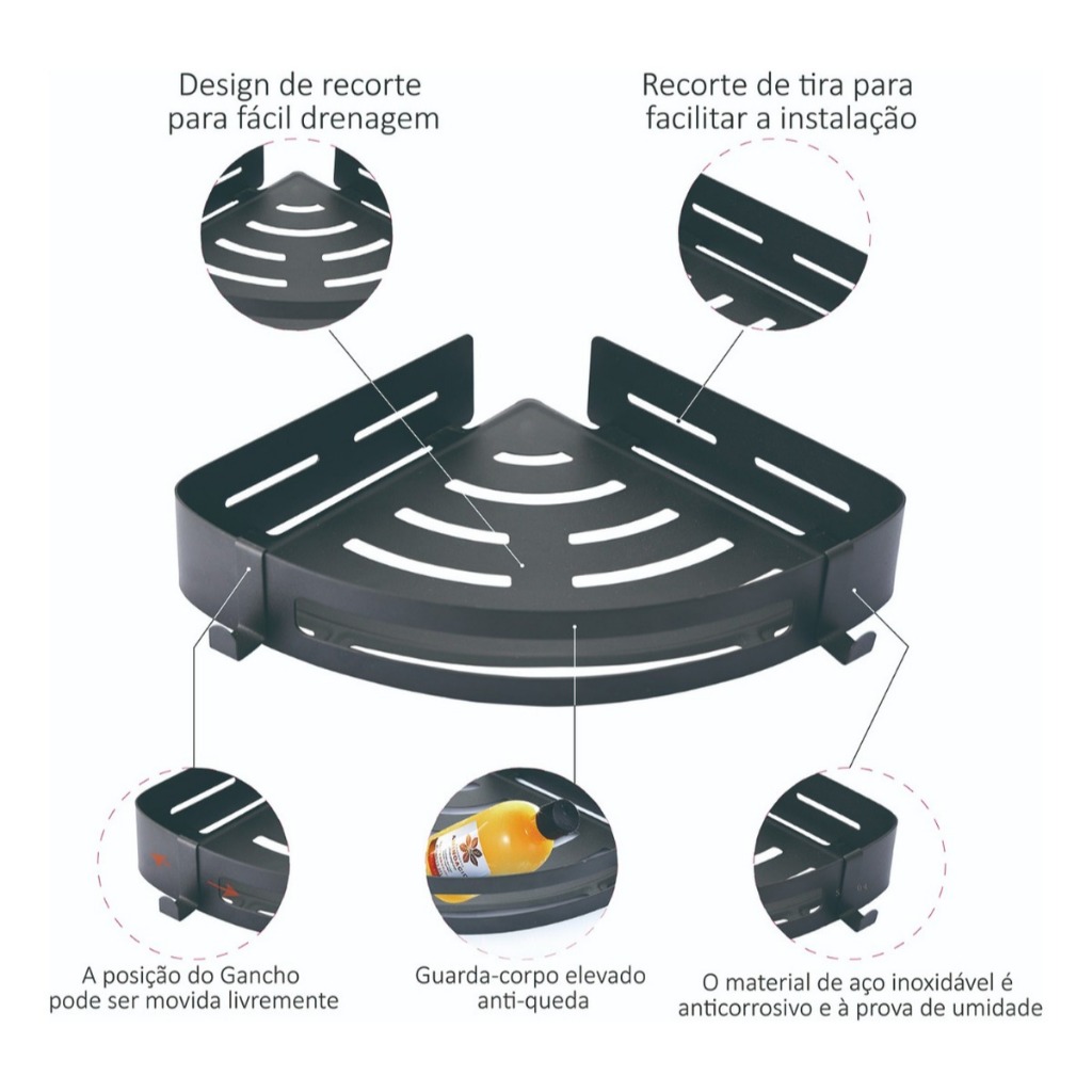 LUMAI Kit 3 Suporte Porta Shampoo E Sabonete de Canto em Aço Inox 304 Prateleira Banheiro Box