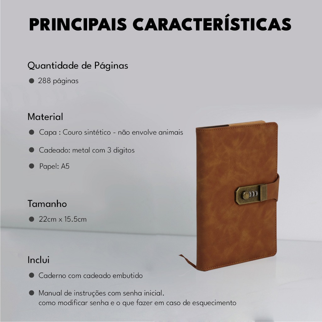 LUMAI Caderno Diário com Cadeado com Senha, Agenda com Fechadura, Tranca e Espaço Segredo Folha A5