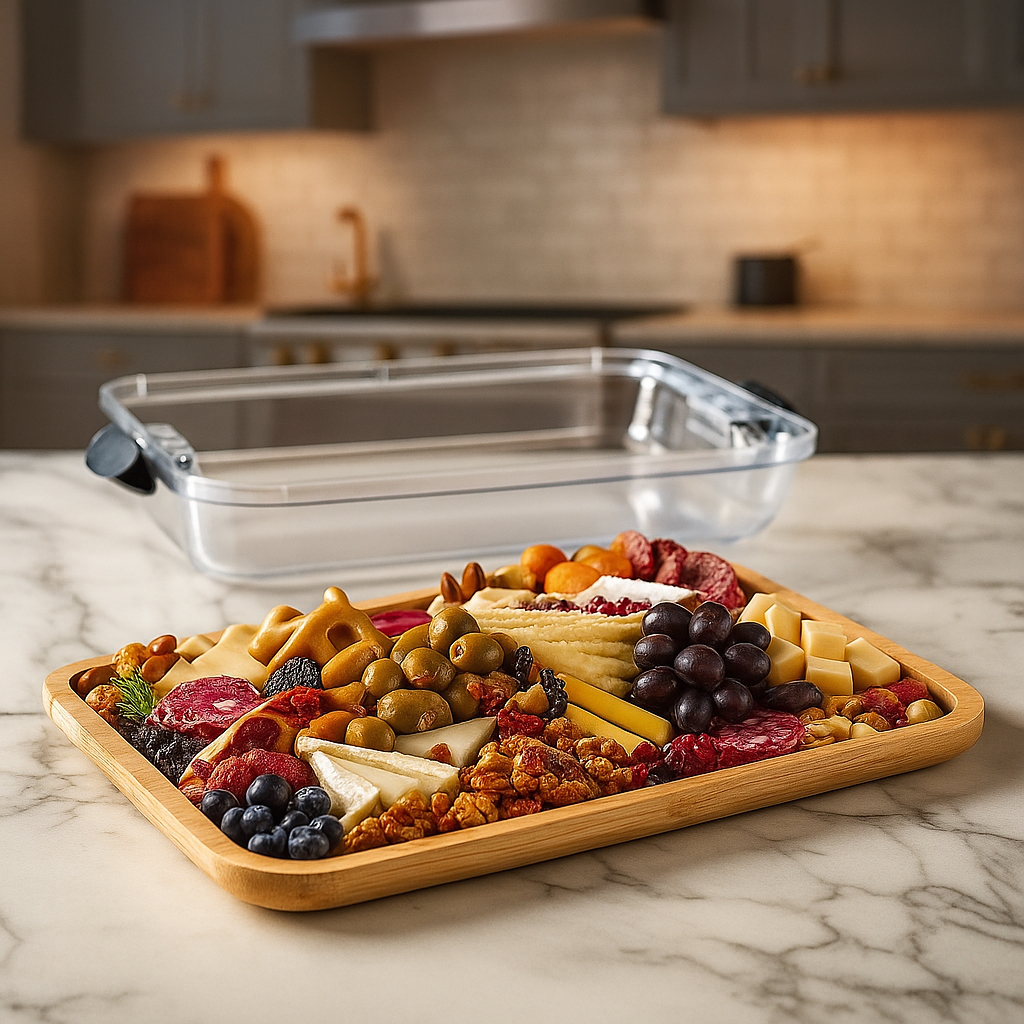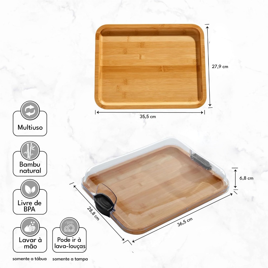 Bandeja Grande de Bambu com Tampa com Travas – Tabua Para Servir e Conservar Frios Queijos Petiscos
