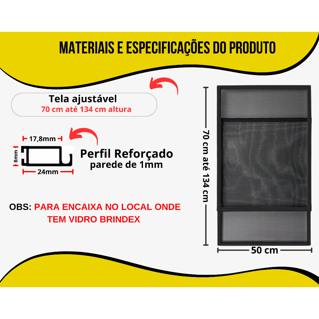 Tela Mosquiteira Regulável Para Vãos E Janelas 50cm até 134cm