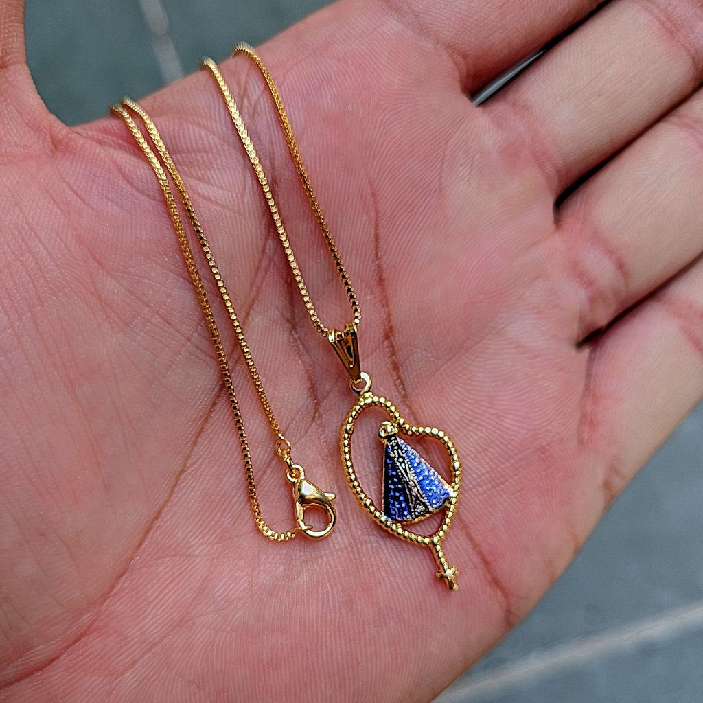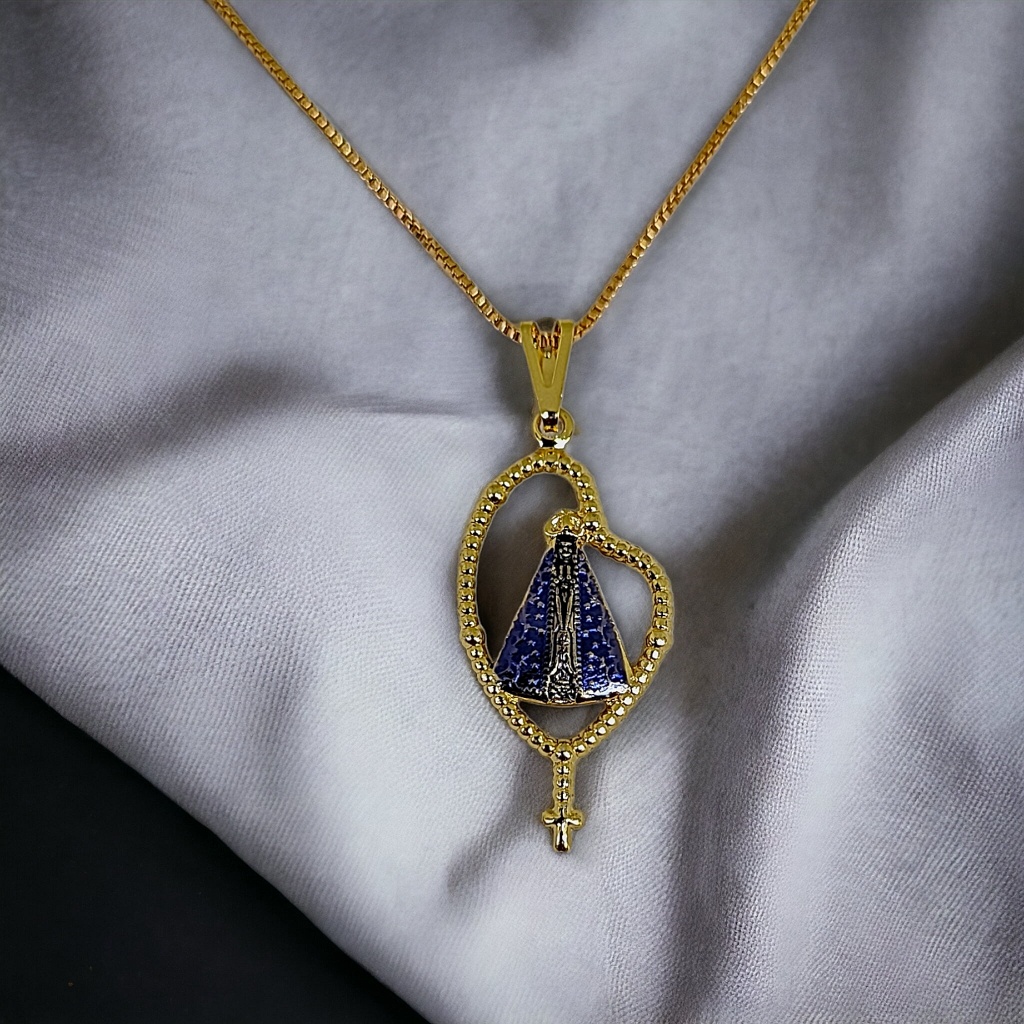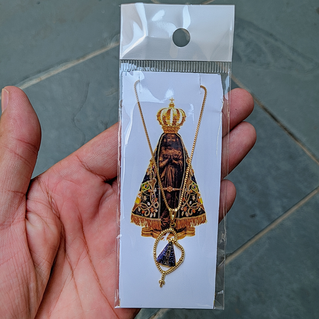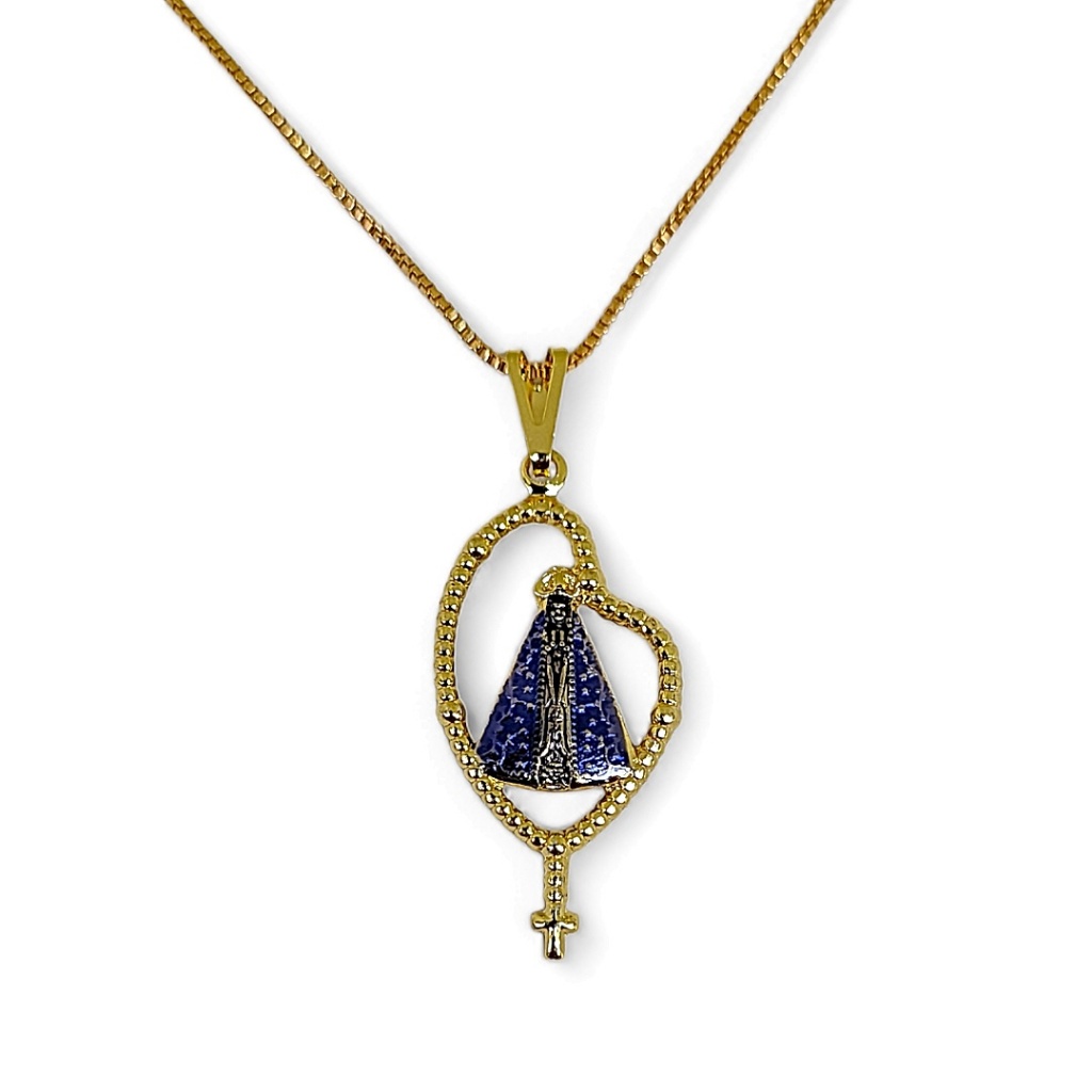 Corrente Folheada Nossa Senhora Aparecida Terço Cordão De Pescoço