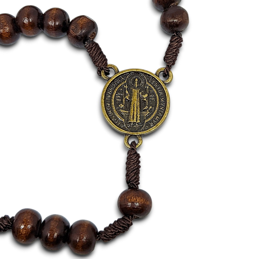 Terço São Bento De Madeira Em Bronze Rosário Artesanal Religioso 40 Cm