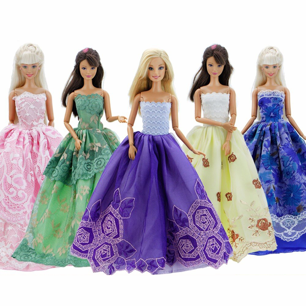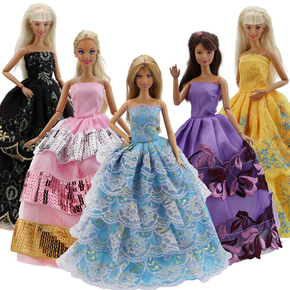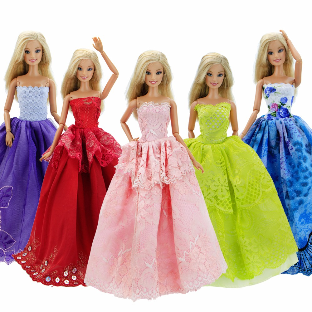 Kit com 5 Vestidos Longos De Princesa Festa Casamento Noiva para Bonecas Compatíveis Bonecas de Até 30cm de Altura - Sheilinha Confecção