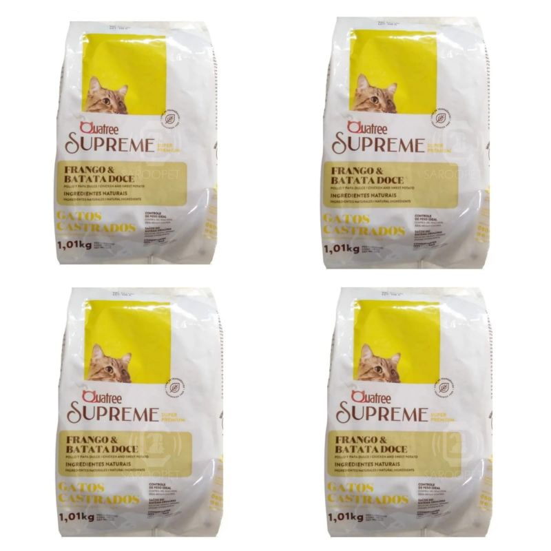Ração Quatree Supreme gato castrado, kit 4 pacotes de 1kg cada, frango e batata doce.