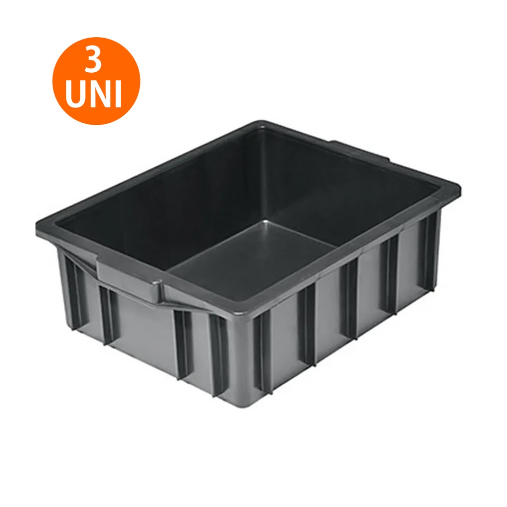 Kit 3 Caixas Plastica 15 Litros Preta Sem Tampa Resistente Ideal Para Compoteira Doméstica