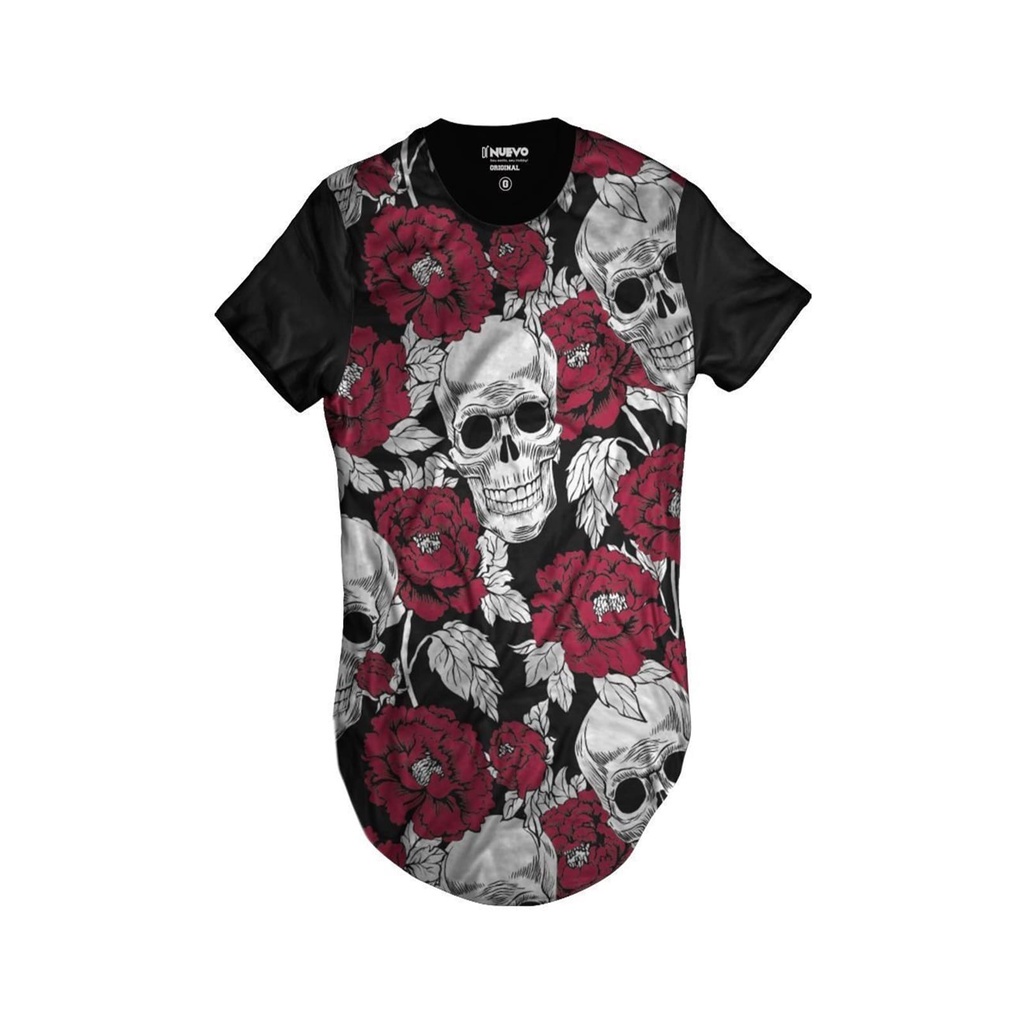 Camisa Swag Caveira Mexicana Florida Rosas Vermelhas