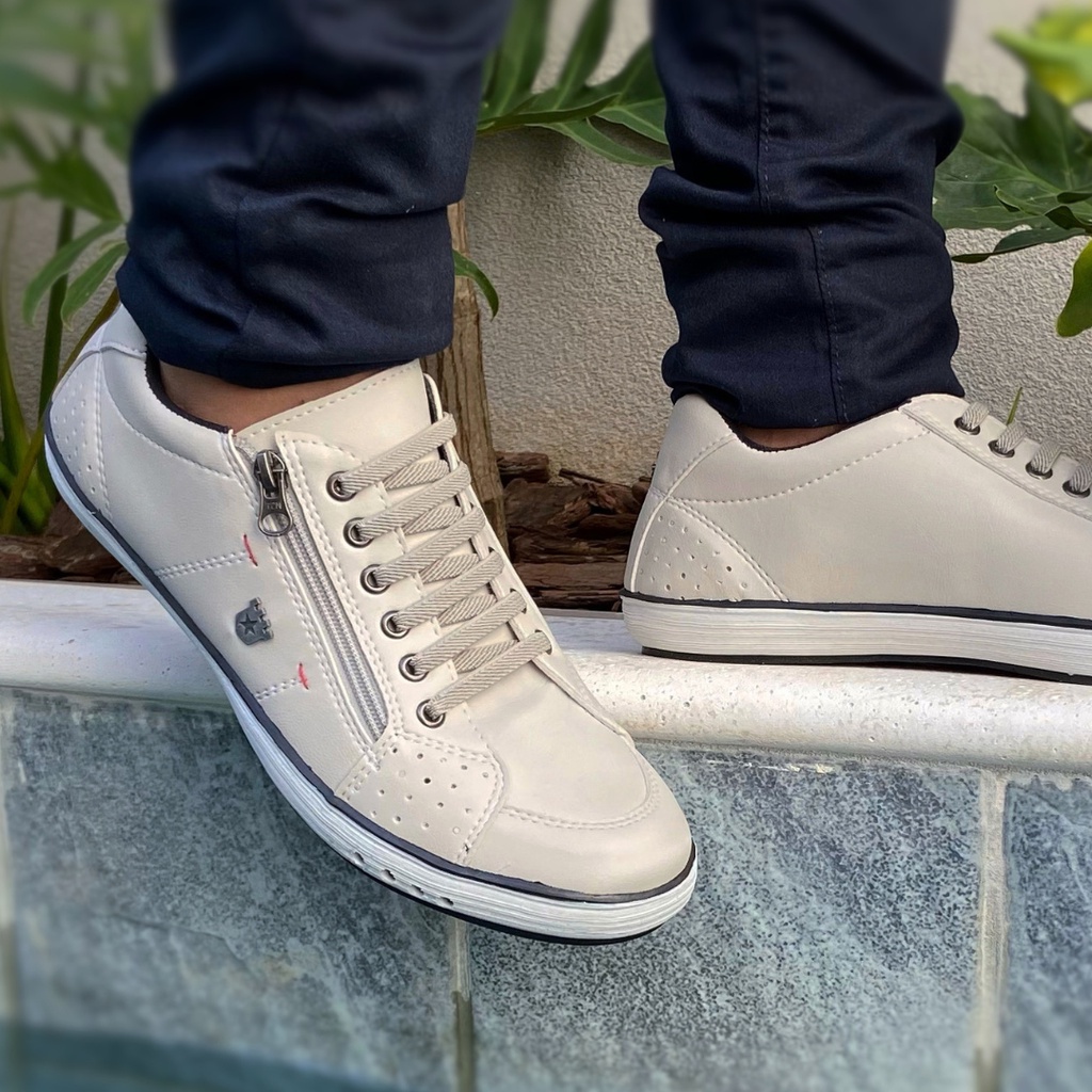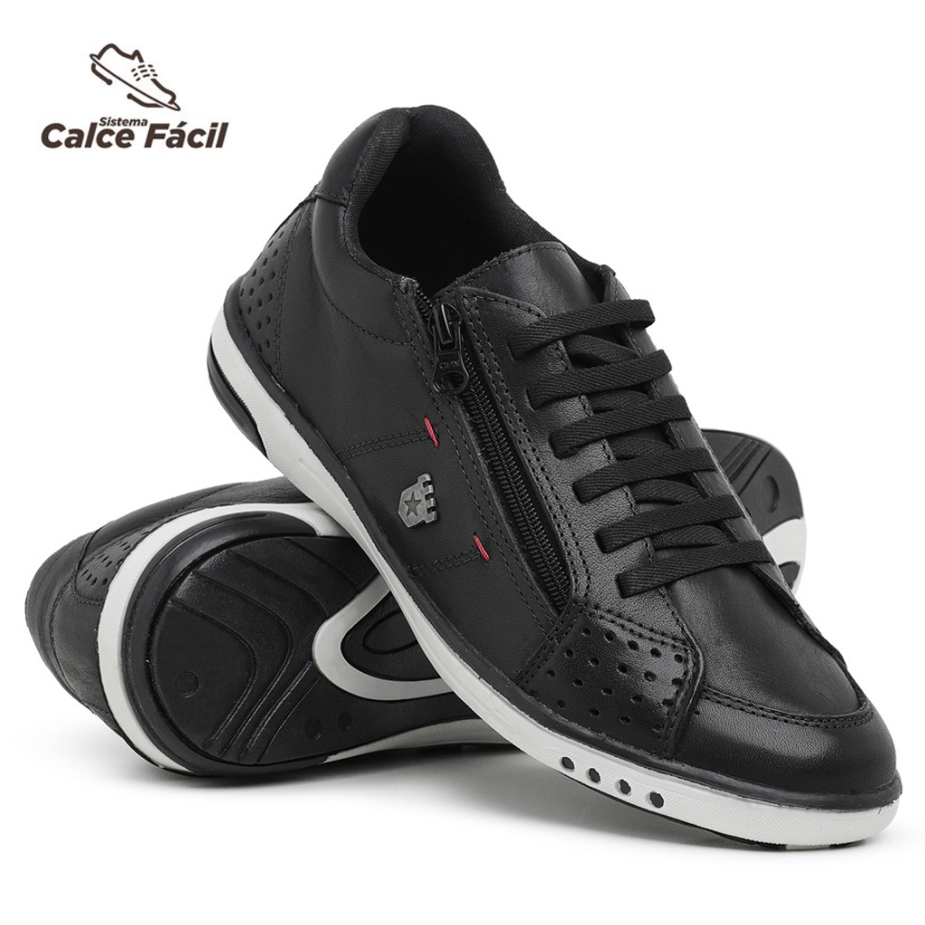Sapatênis Masculino Couro Casual Com Ziper Anti stress Moderno Calce Facil Ziper lateral Macio e Confortavel