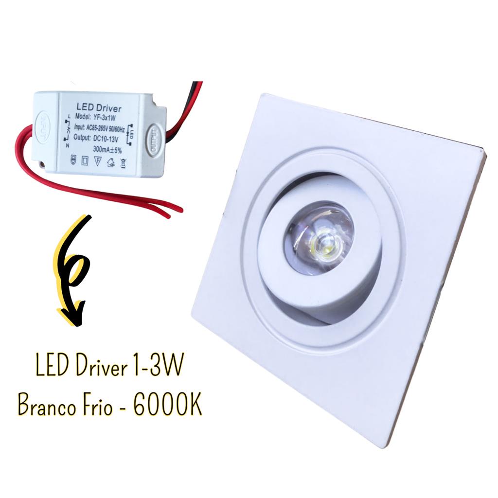 Spot LED Cob 1W Direcionavel Mini 6X6cm Embutir 110v 220v Bivolt