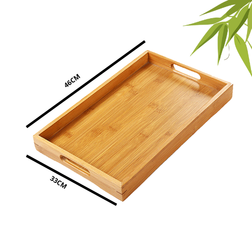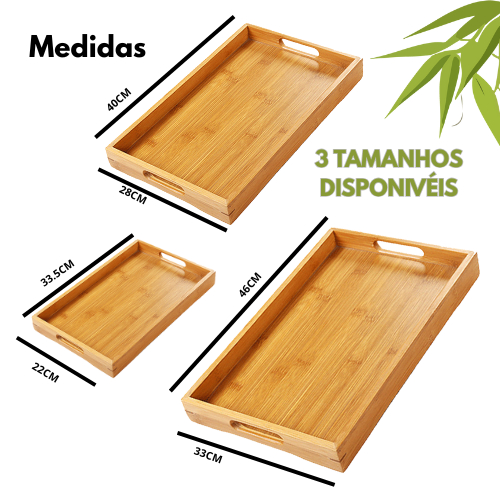 Bandeja Retangular De Bambu Com Alça de apoio Reta 46x33cm Casita