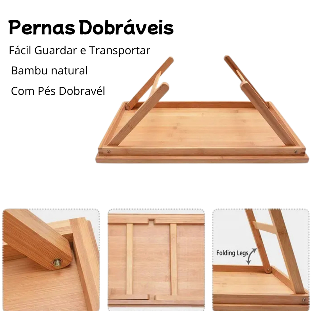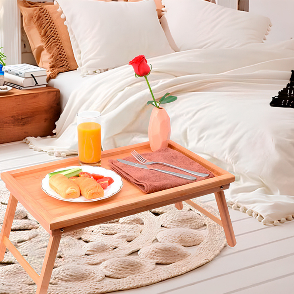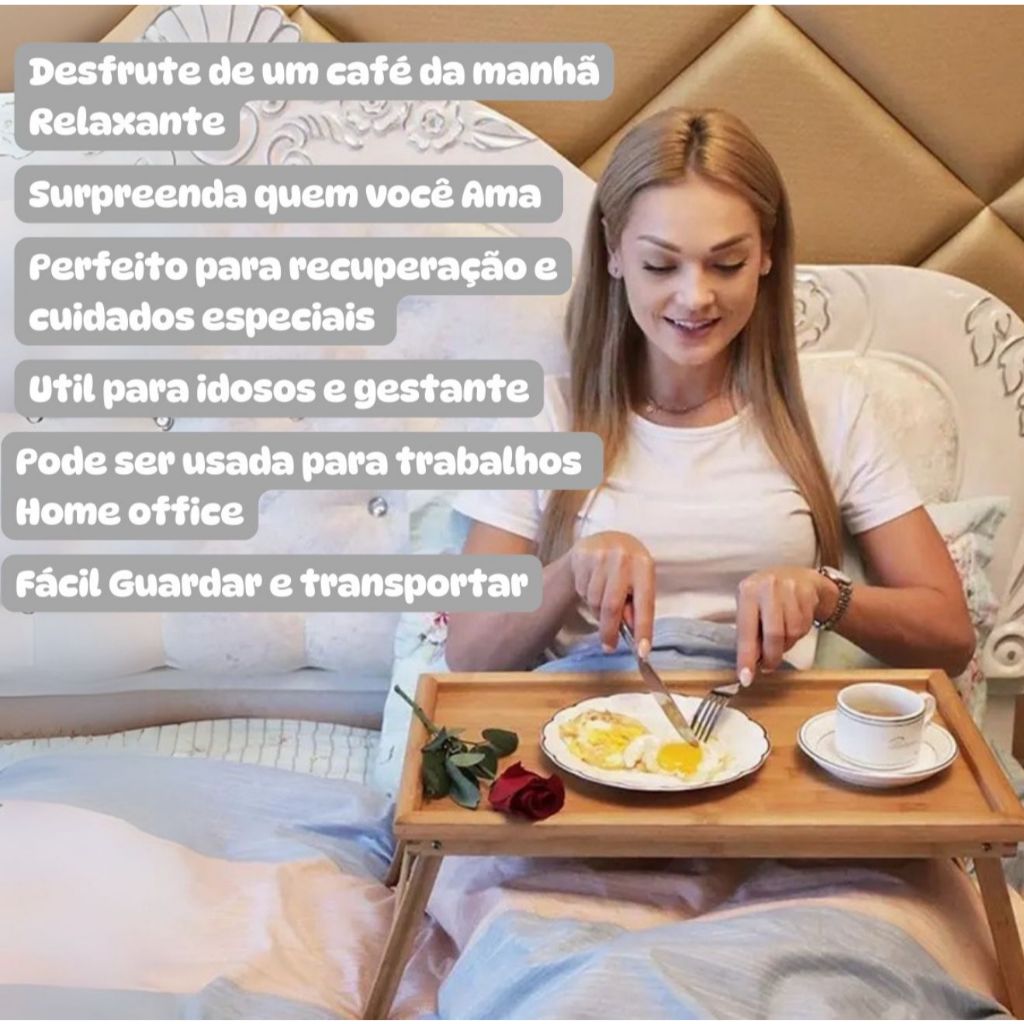 Mesa bandeja café da manhã em bambu premium 50cm pés dobrável cama sofá momentos especiais