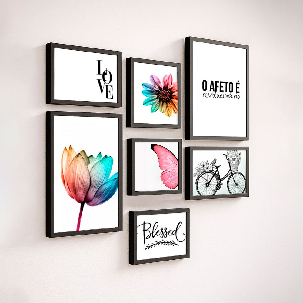 Kit 7 Placas Quadros Decorativos Love Frases Motivacionais Flores Coloridas