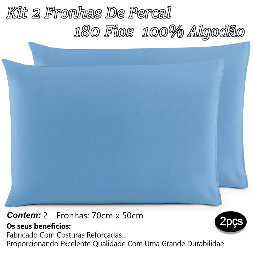 Kit 02 Fronhas De Percal 200 Fios 100% Algodão Travesseiro