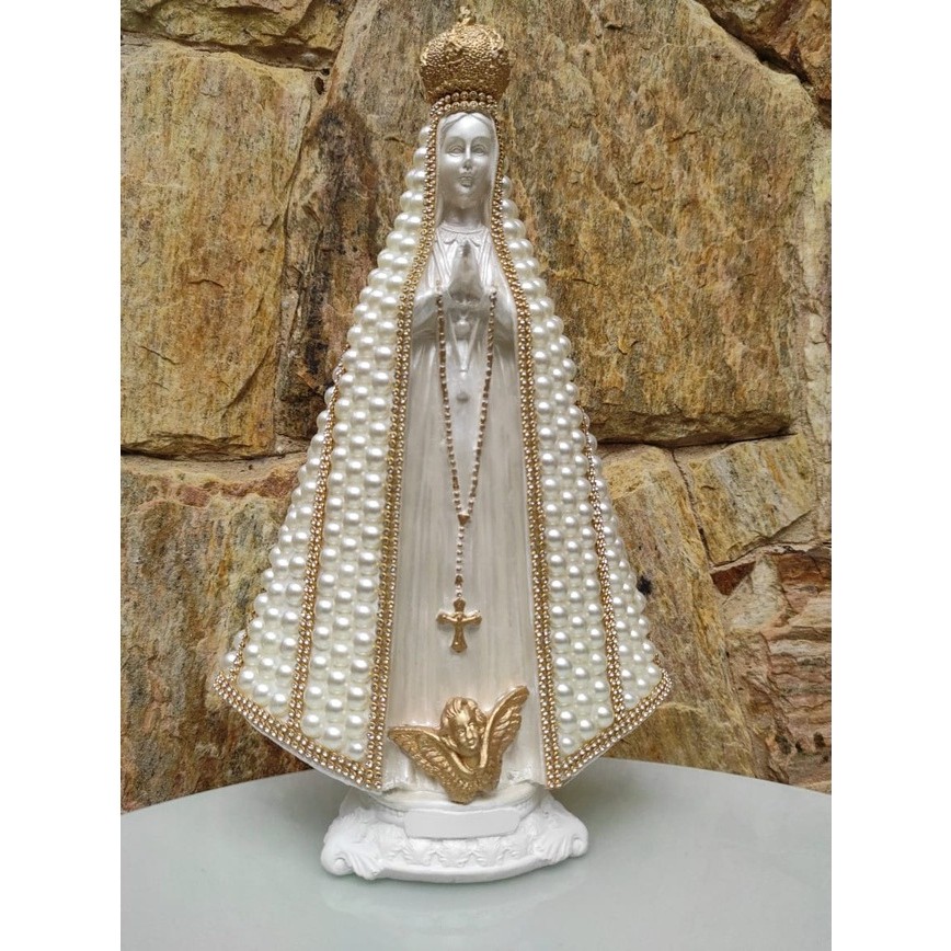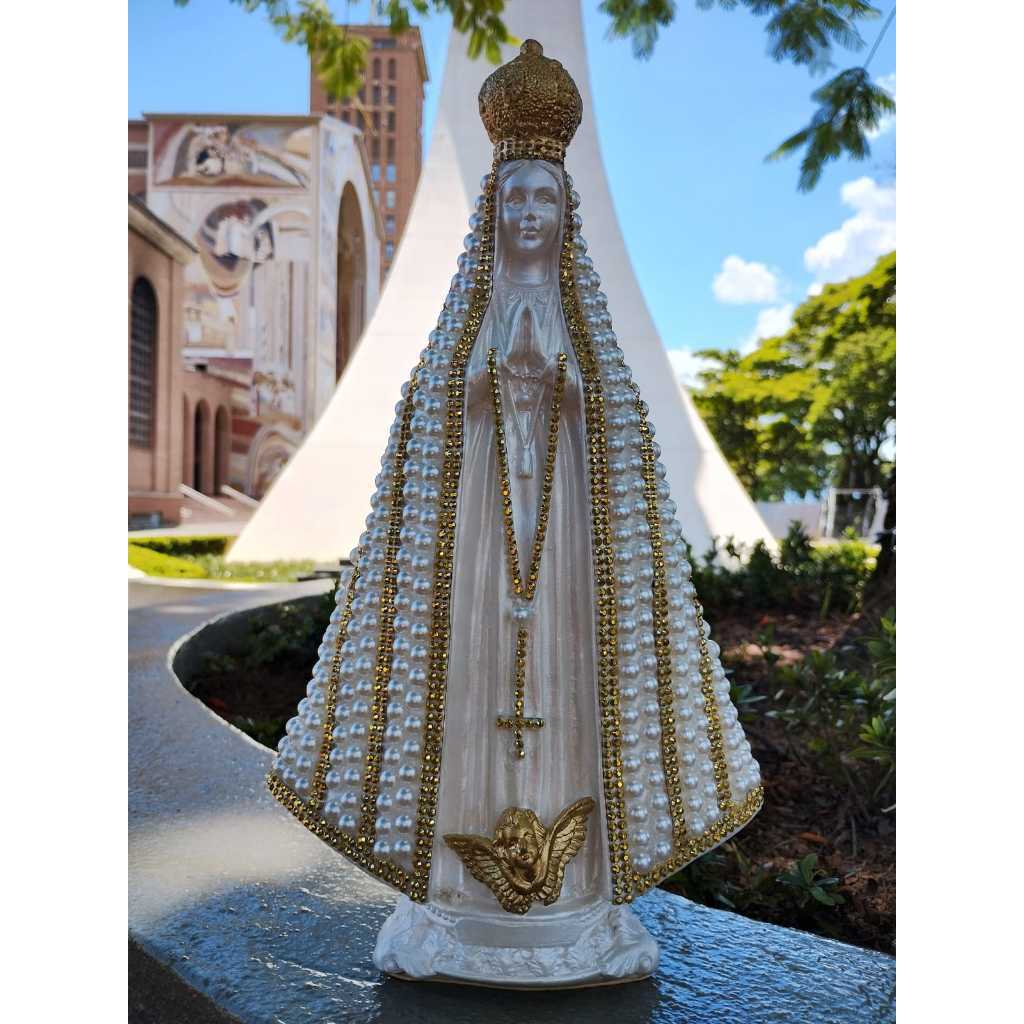 Nossa Senhora Aparecida - Imagem em Pérolas brancas 34cm