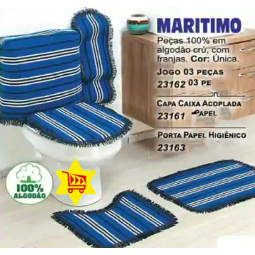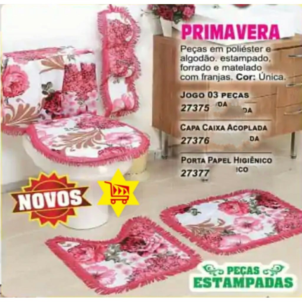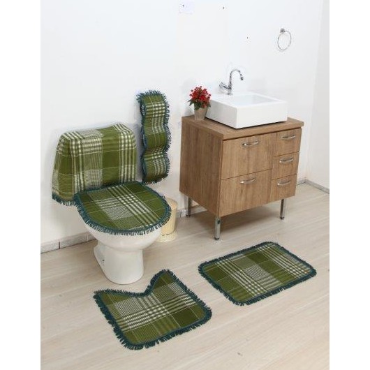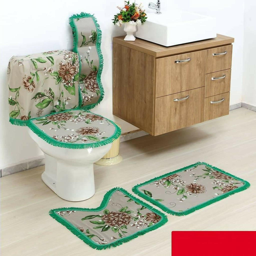 Kit ou Jogo para Banheiro - 03 Peças - Estampados - 02 Tapetes e 01 Protetor Sanitário