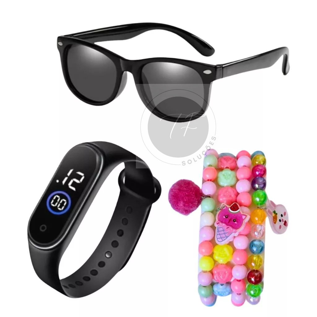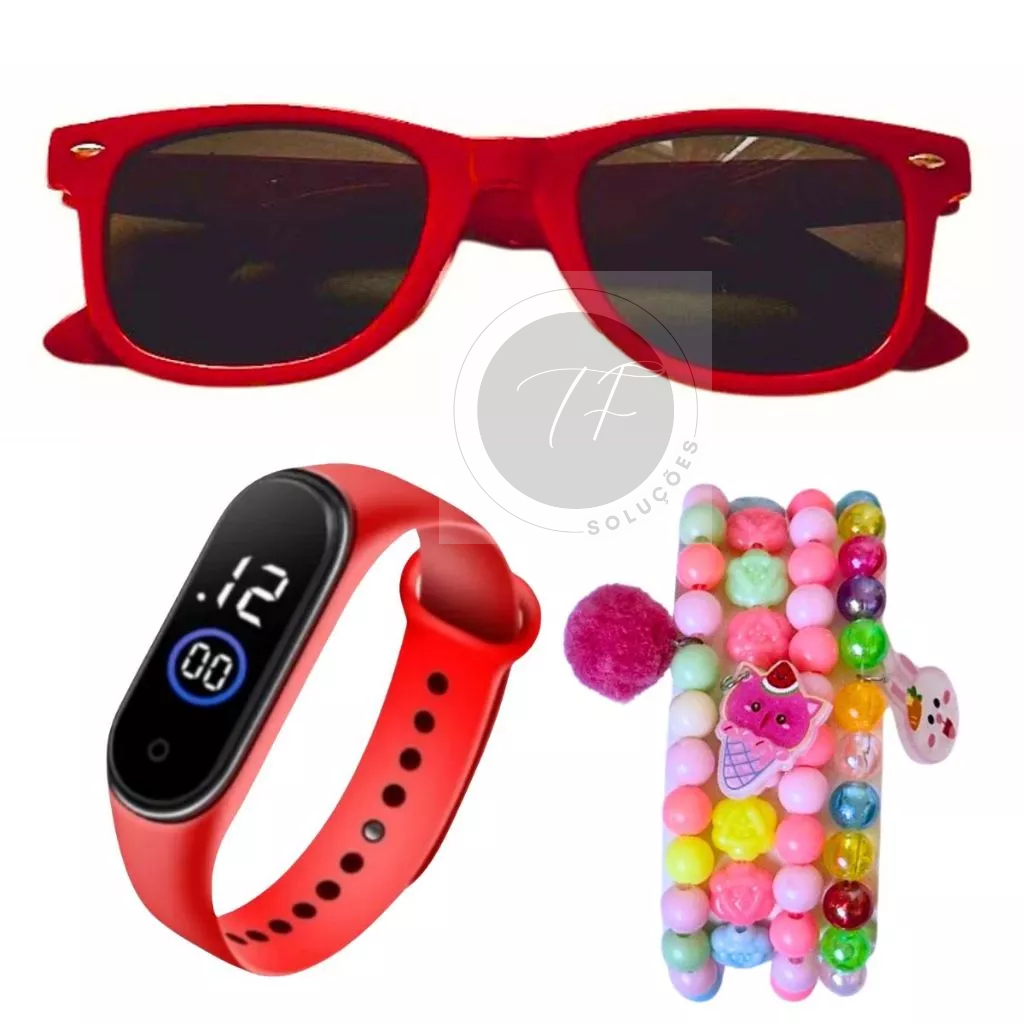 Relógio Infantil De Pulso Digital à prova d'água + Óculos De Sol Infantil + Ki 4 Pulseiras - presente dia das crianças