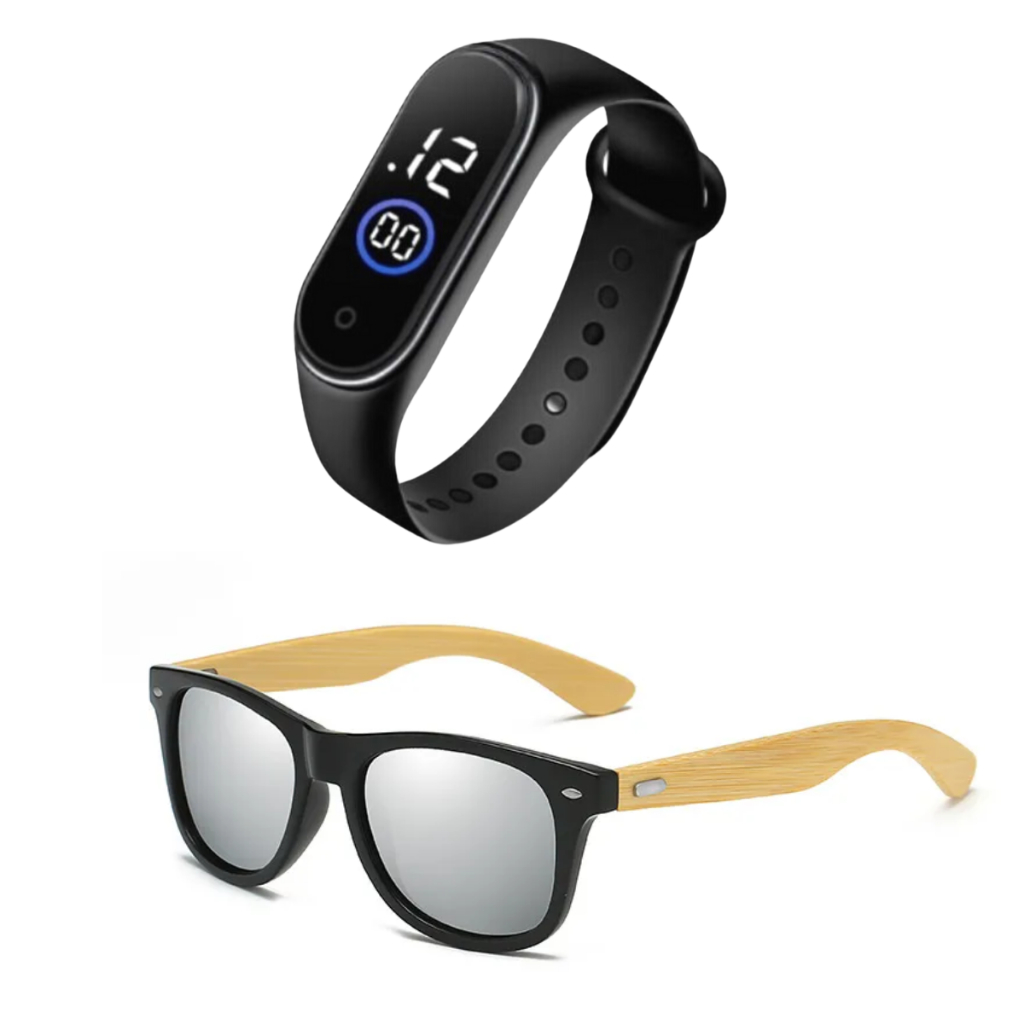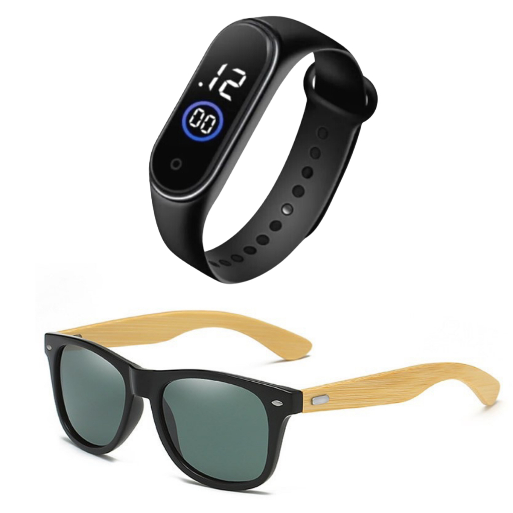 Relógio Infantil Digital Led + óculos de sol infantil menino da moda Haste estilo Bambu