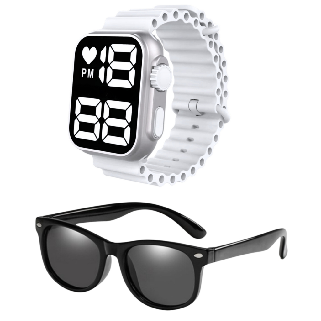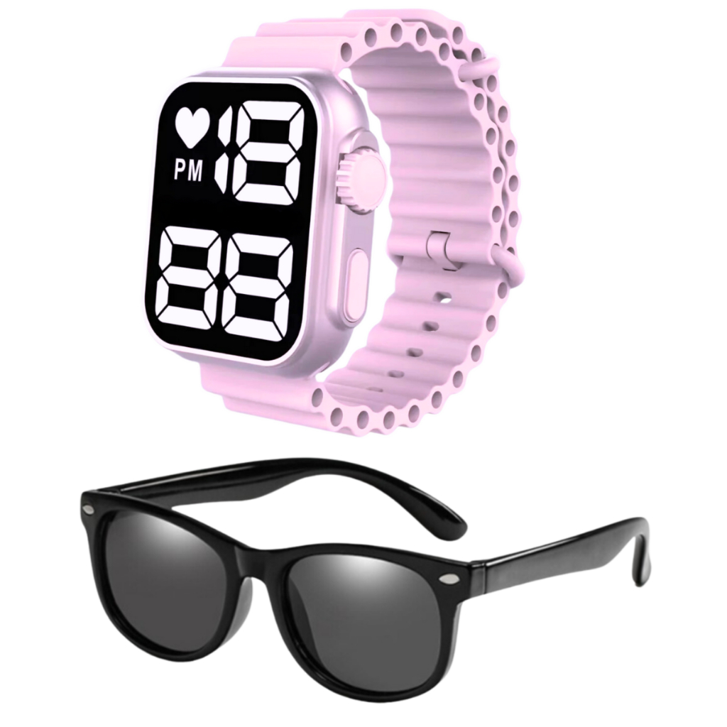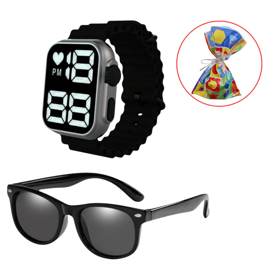 Relógio Digital Infantil à Prova D'água + Óculos De Sol Infantil Case - Presente dia das crianças, presente de natal