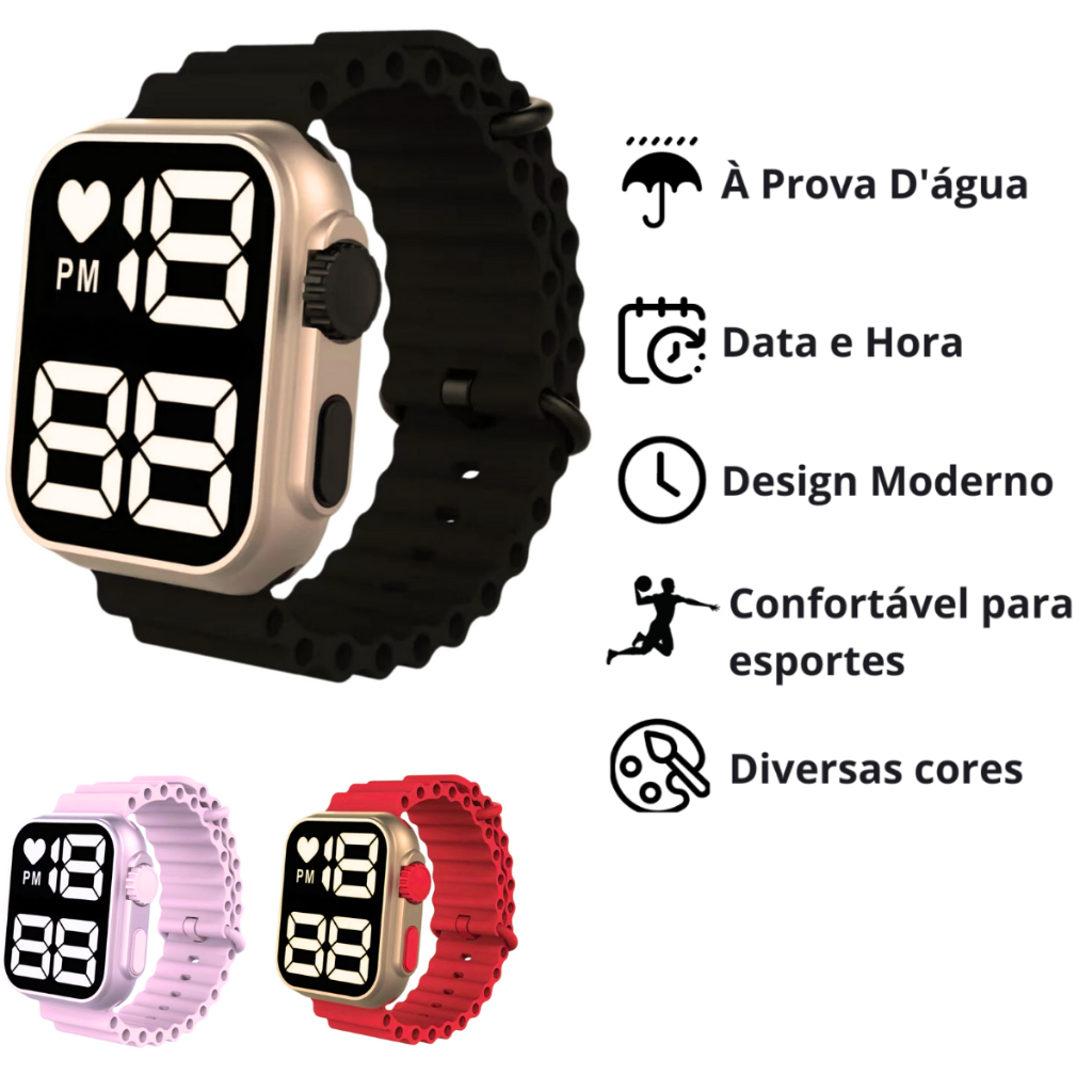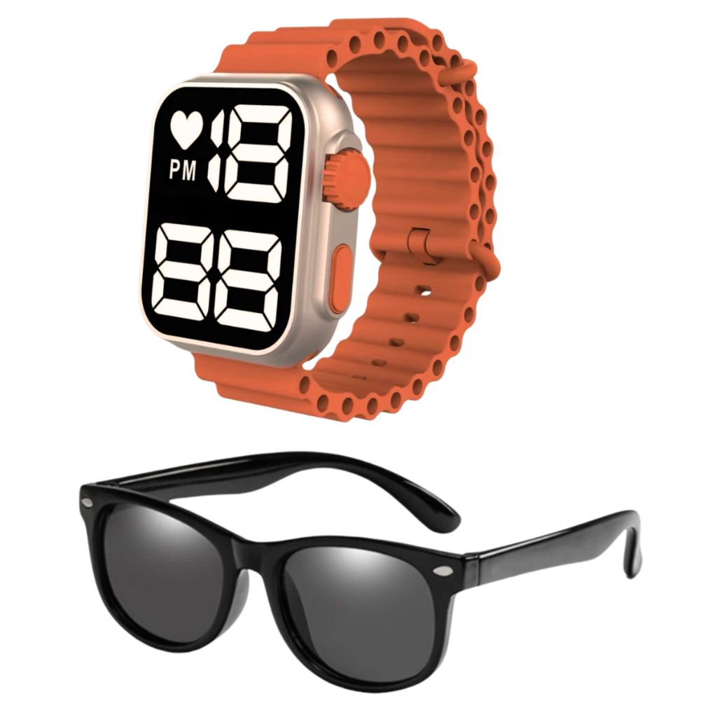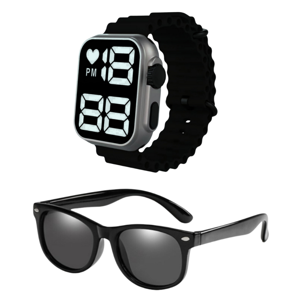 Relógio Digital Infantil à Prova D'água + Óculos De Sol Infantil Case - Presente dia das crianças, presente de natal