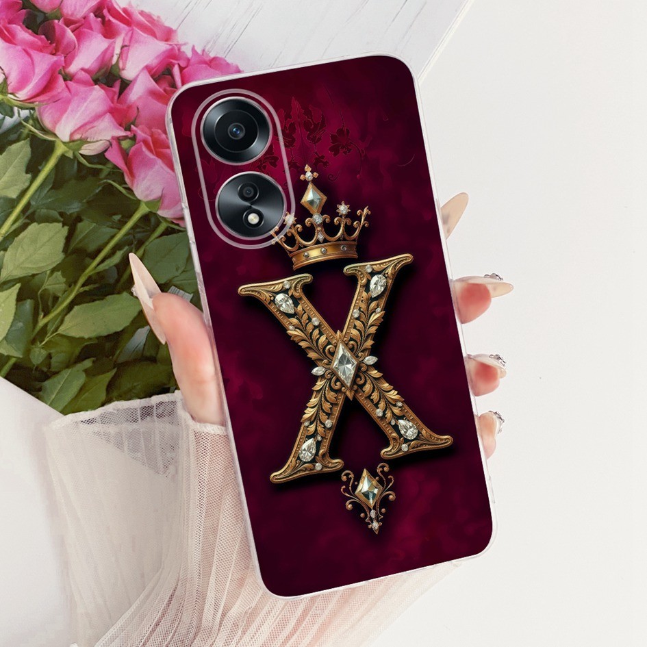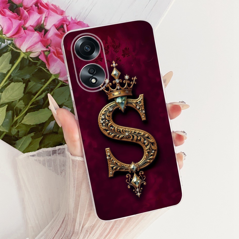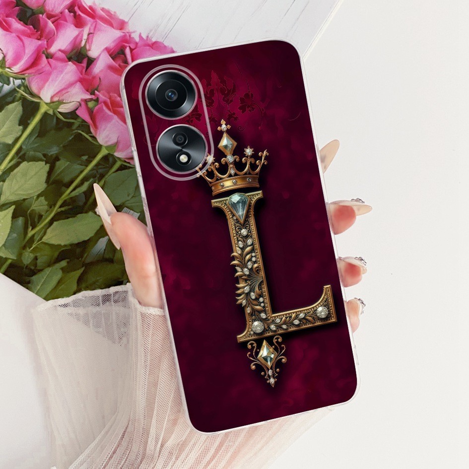 Para OPPO A58 4G CPH2577 Embalagem Moda Letra Inicial Silicone Macio Fino TPU Claro Capa Traseira A78 4G CPH2565 Caso De