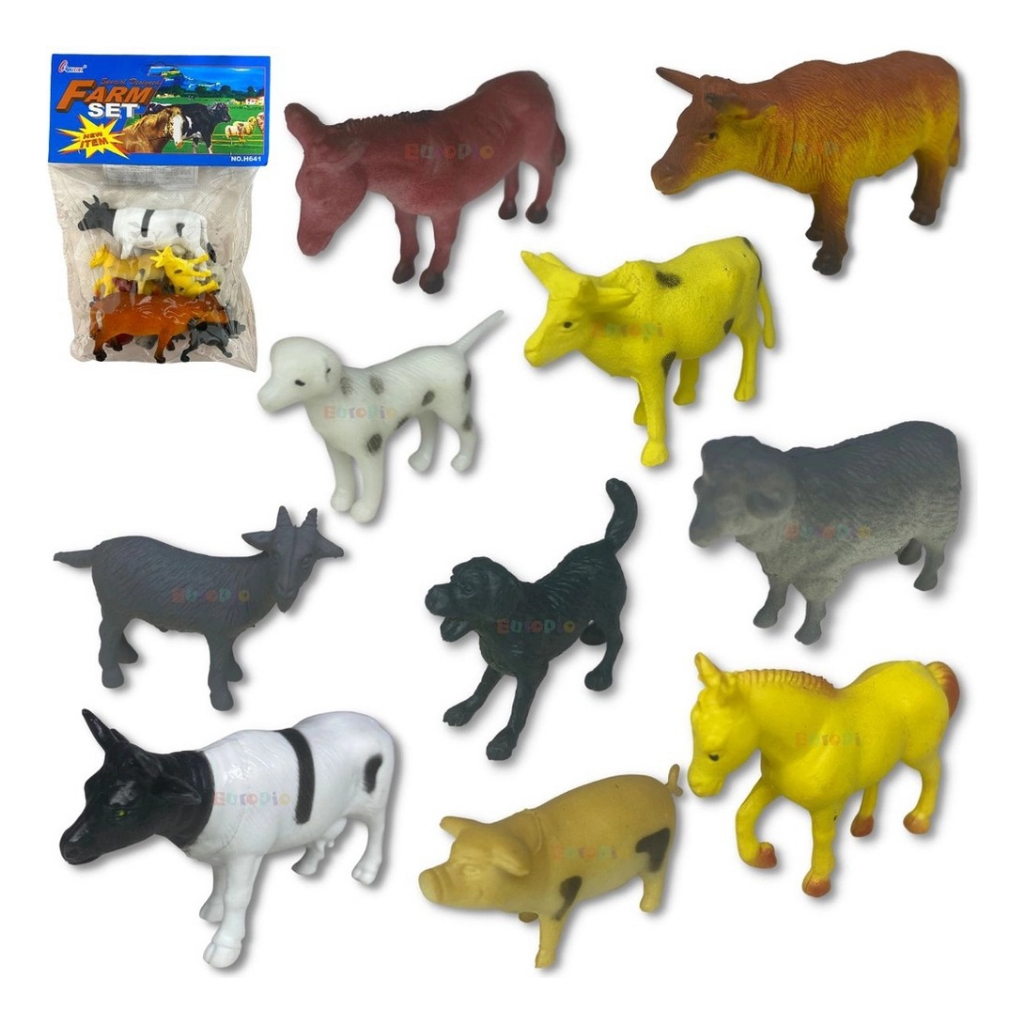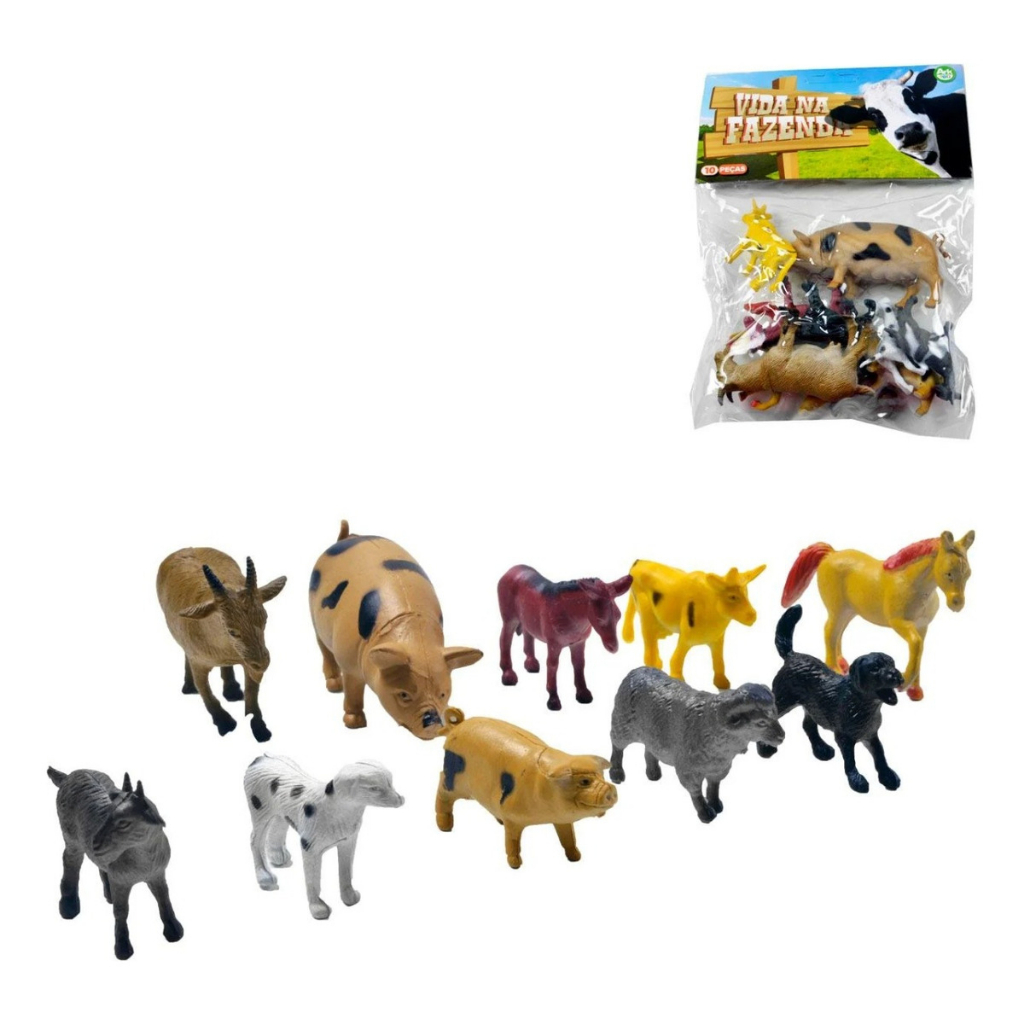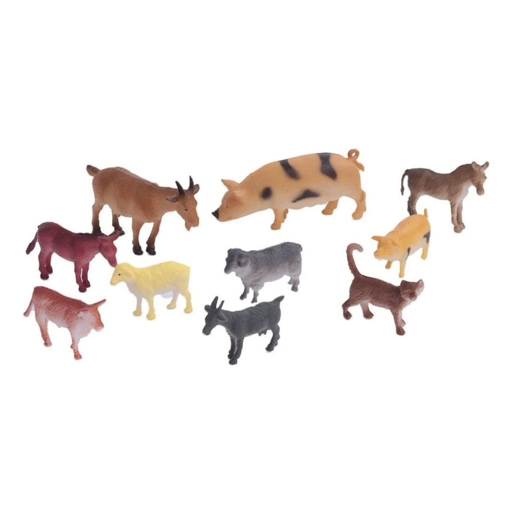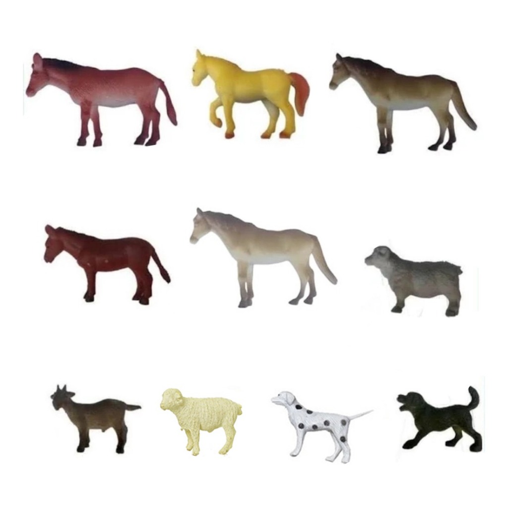 Kit 10 Animais Da Fazenda Safari Zoo Pequenos De Borracha Selvagens Cavalos Burro Cachorros Ovelha SET SIMULÇÃO FIGURAS